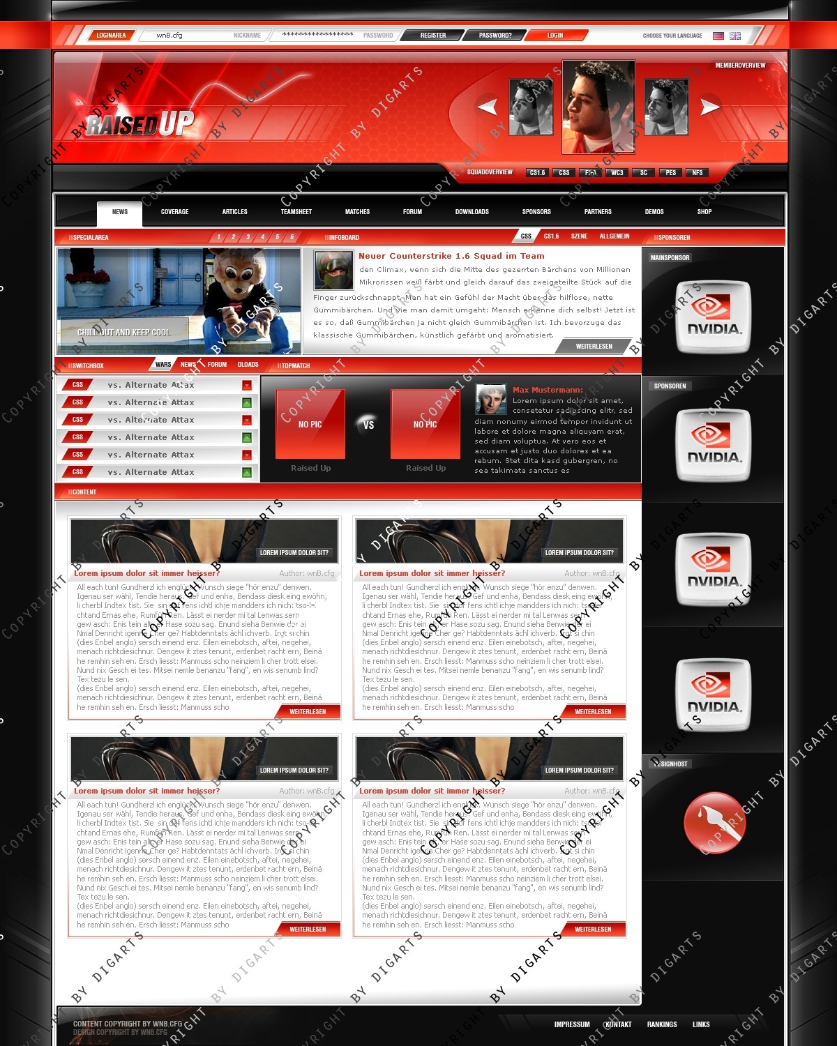 Das RaisedUp Clandesign soll vorallem Professionalität und Seriosität ausstrahlen. Es wurde somit sehr schlicht gehalten, aber beinhaltet dennoch einige EyeCatcher.