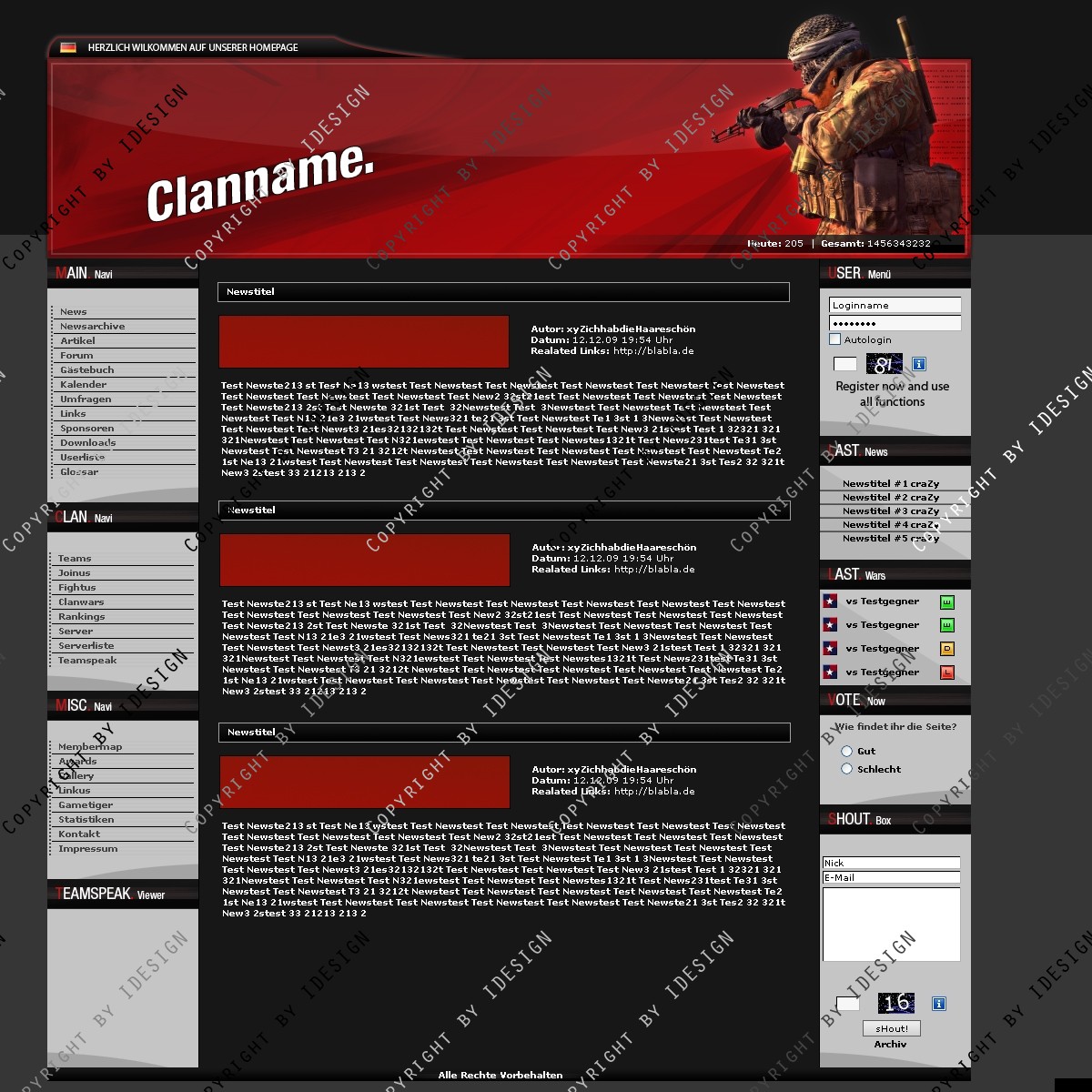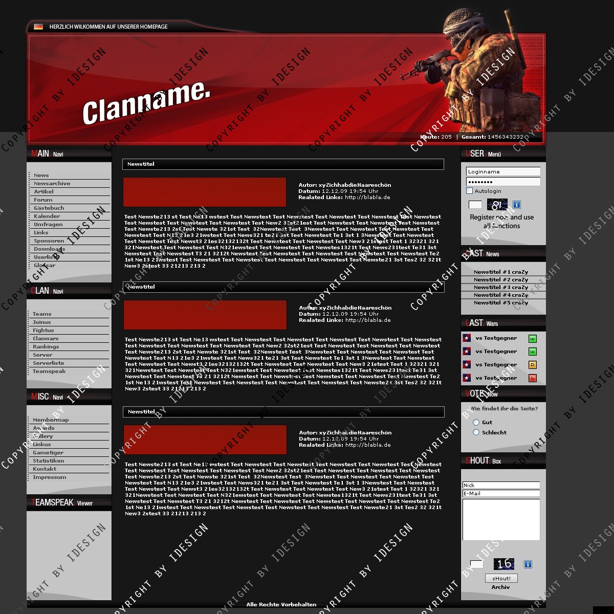 In der psd sind Call of Duty 4, Crysis, Battlefield und Call of Duty 1 Figuren für den Header.