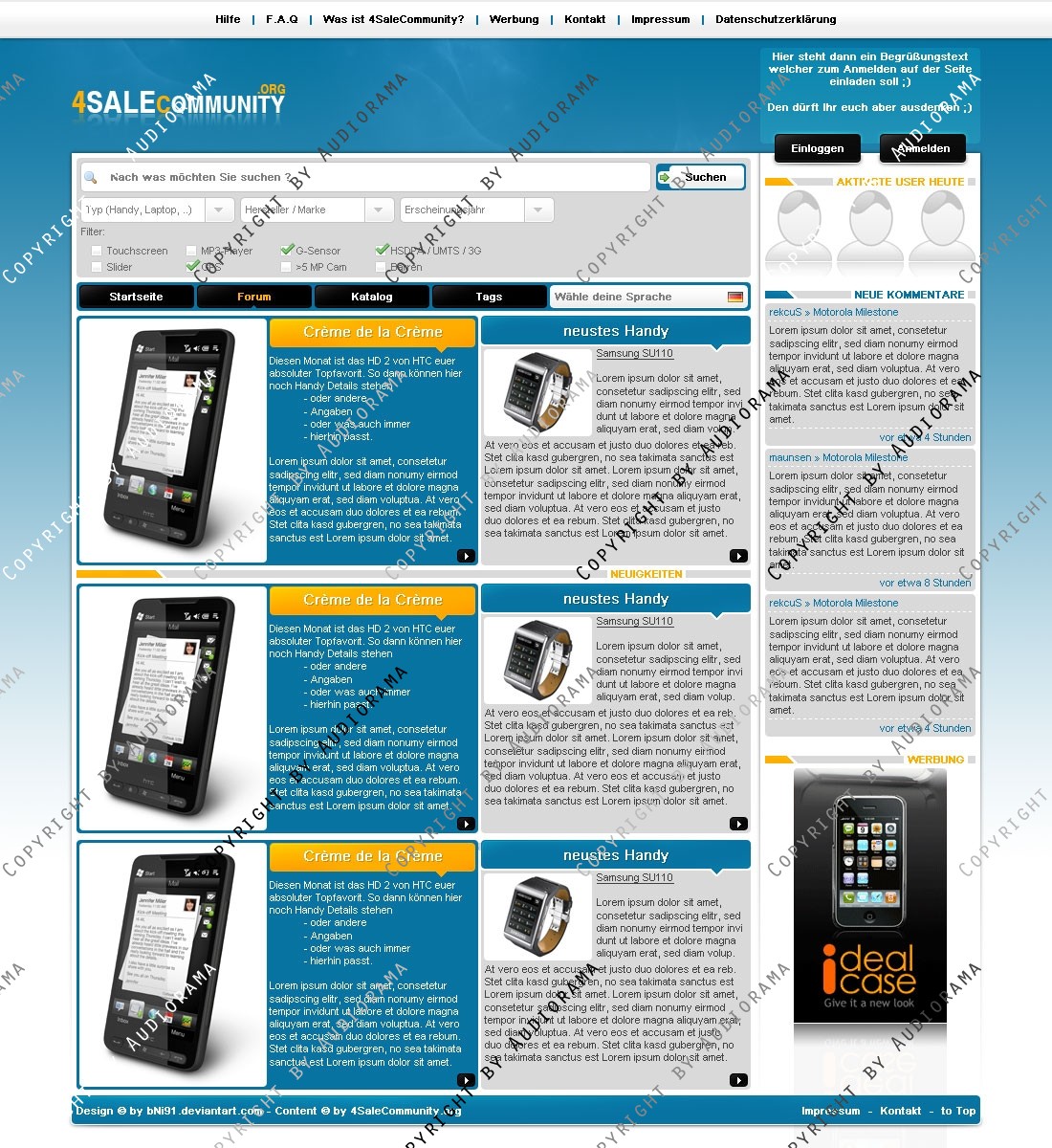 Hinweis: Hierbei handelt es sich nur um das Design, eine Anpassung an ein CMS-System ist nicht im Preis enthalten!