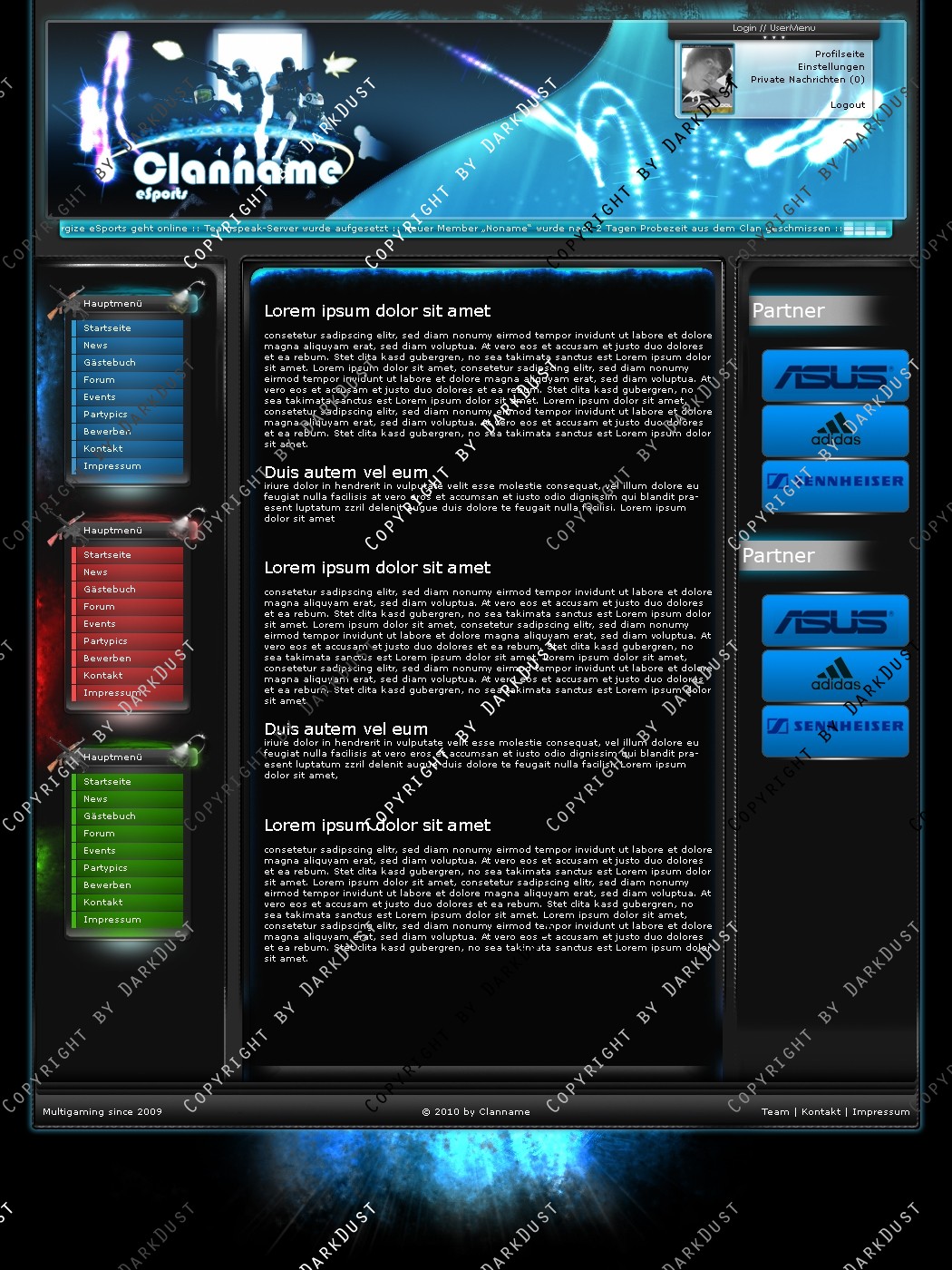 Das Usermenü befindet auch noch sich in einer seperaten, geslicedten .PSD-Datei, um die Umsetzung ein wenig zu erleichtern.