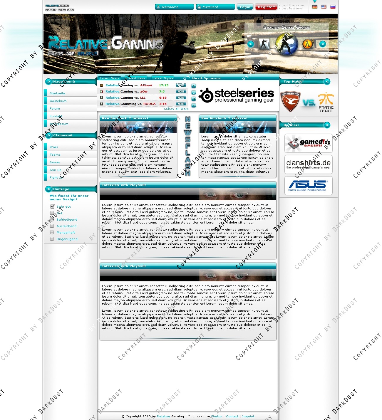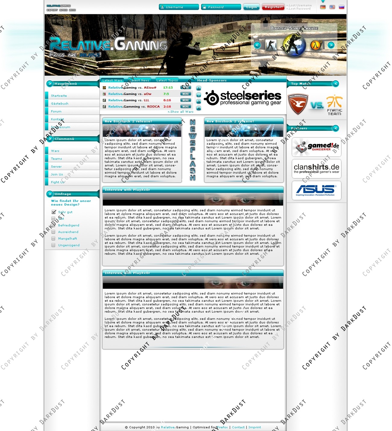Du hast noch keinen Account auf ClanDesigns.de? Dann kannst du dich hier kostenlos registrieren!