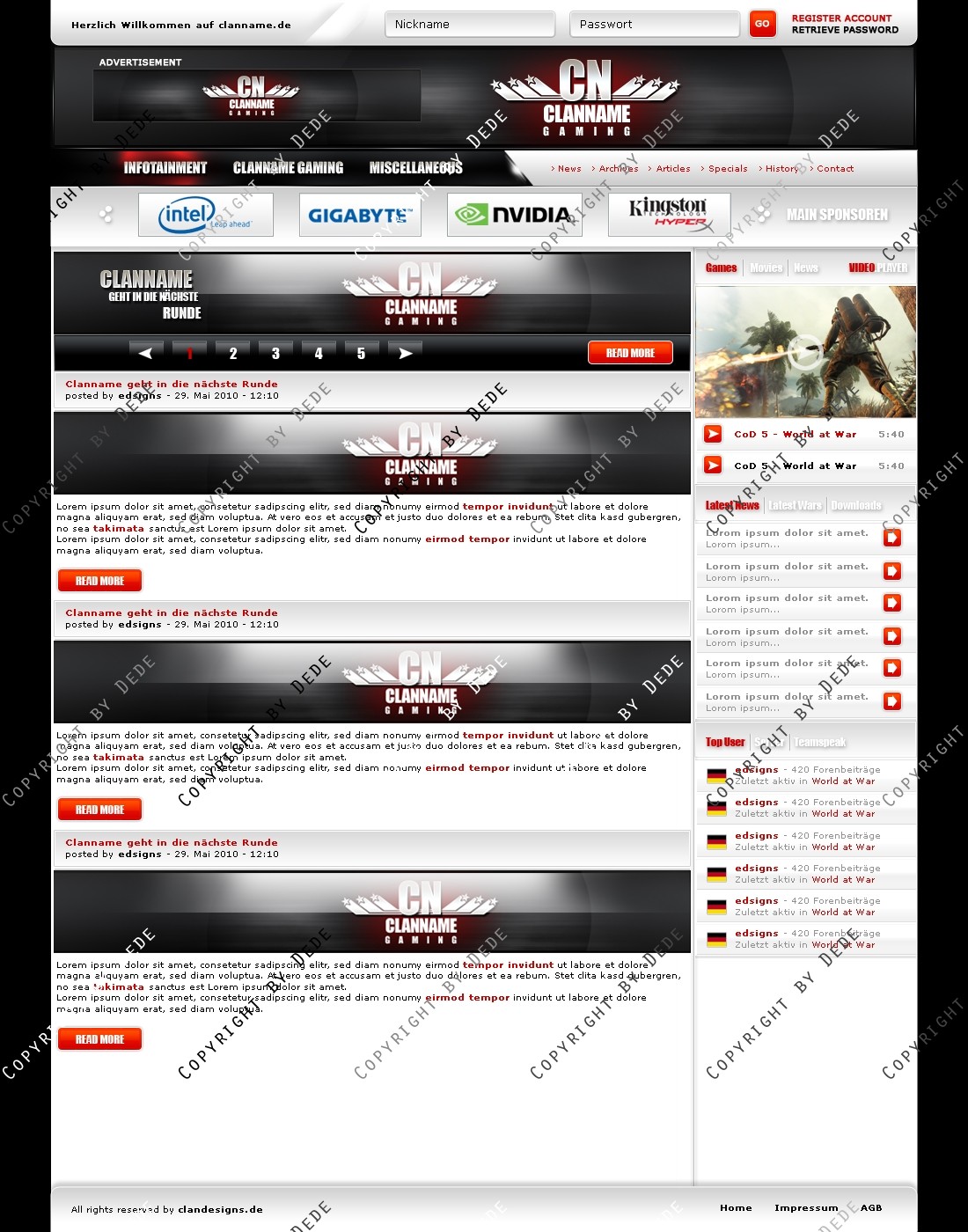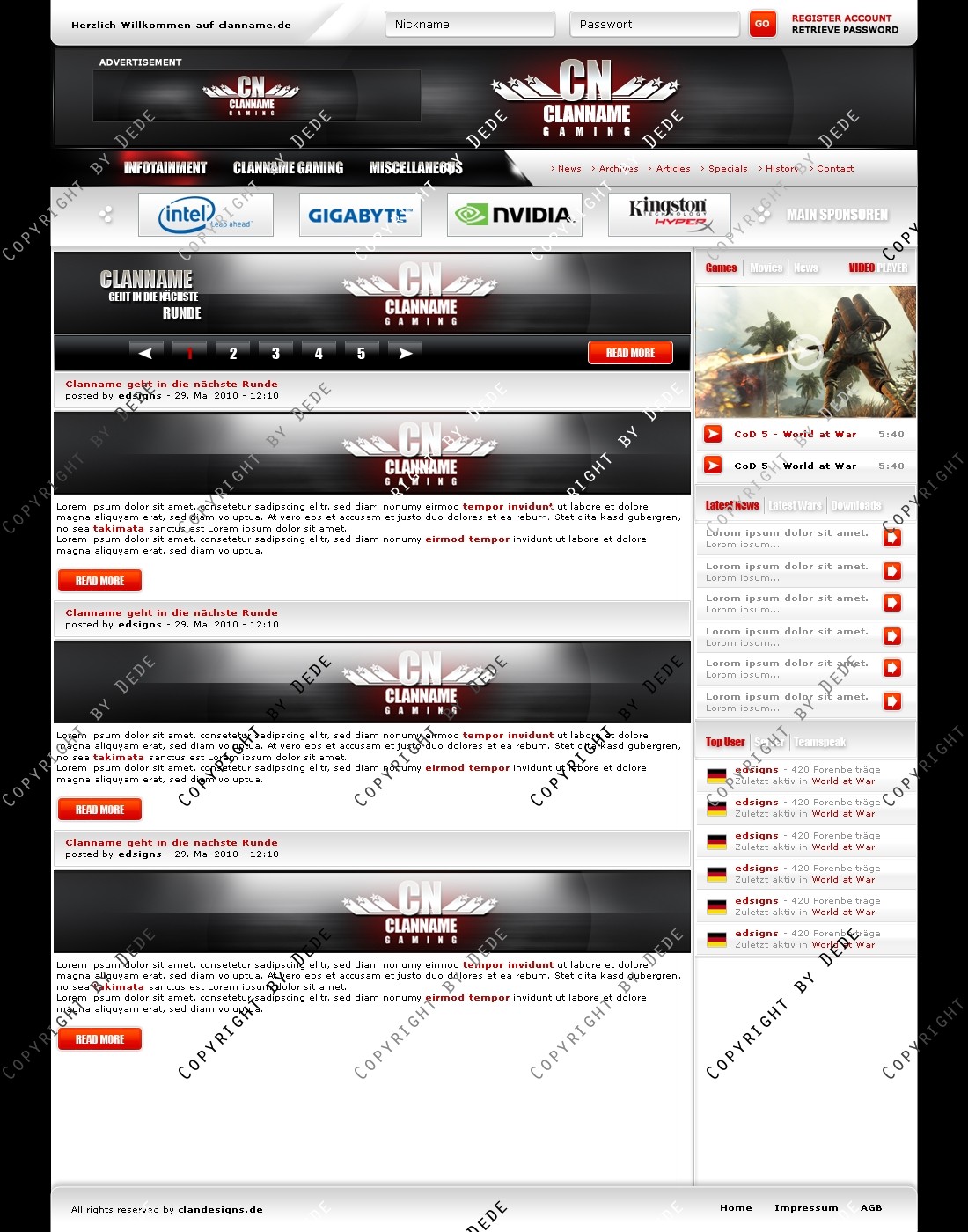 Du hast noch keinen Account auf ClanDesigns.de? Dann kannst du dich hier kostenlos registrieren!