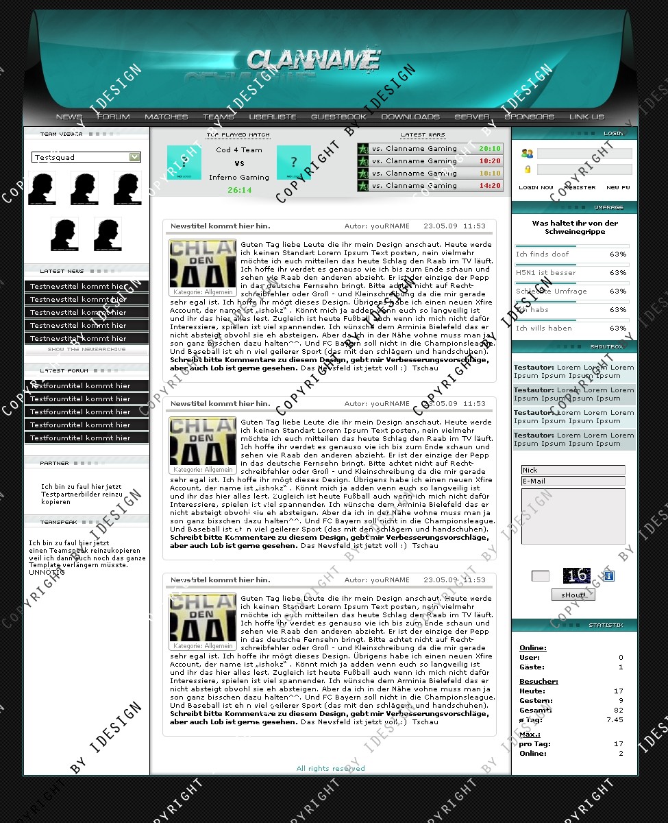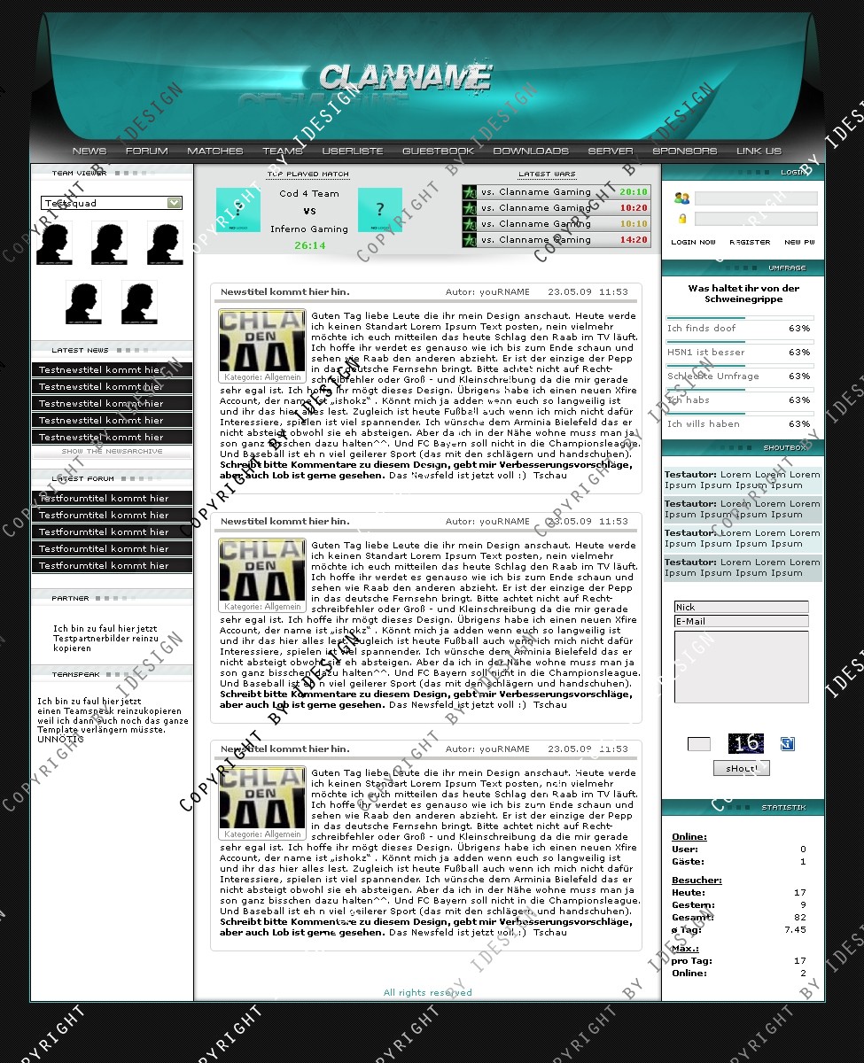 Du hast noch keinen Account auf ClanDesigns.de? Dann kannst du dich hier kostenlos registrieren!