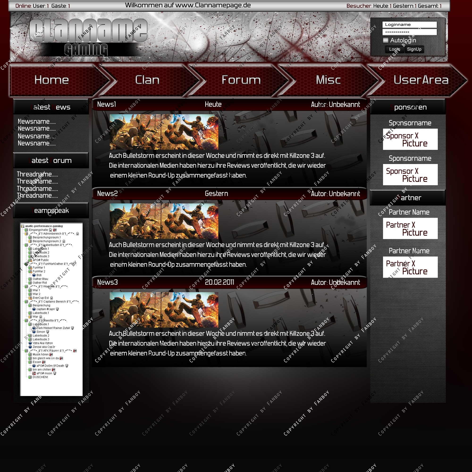 Du hast noch keinen Account auf ClanDesigns.de? Dann kannst du dich hier kostenlos registrieren!