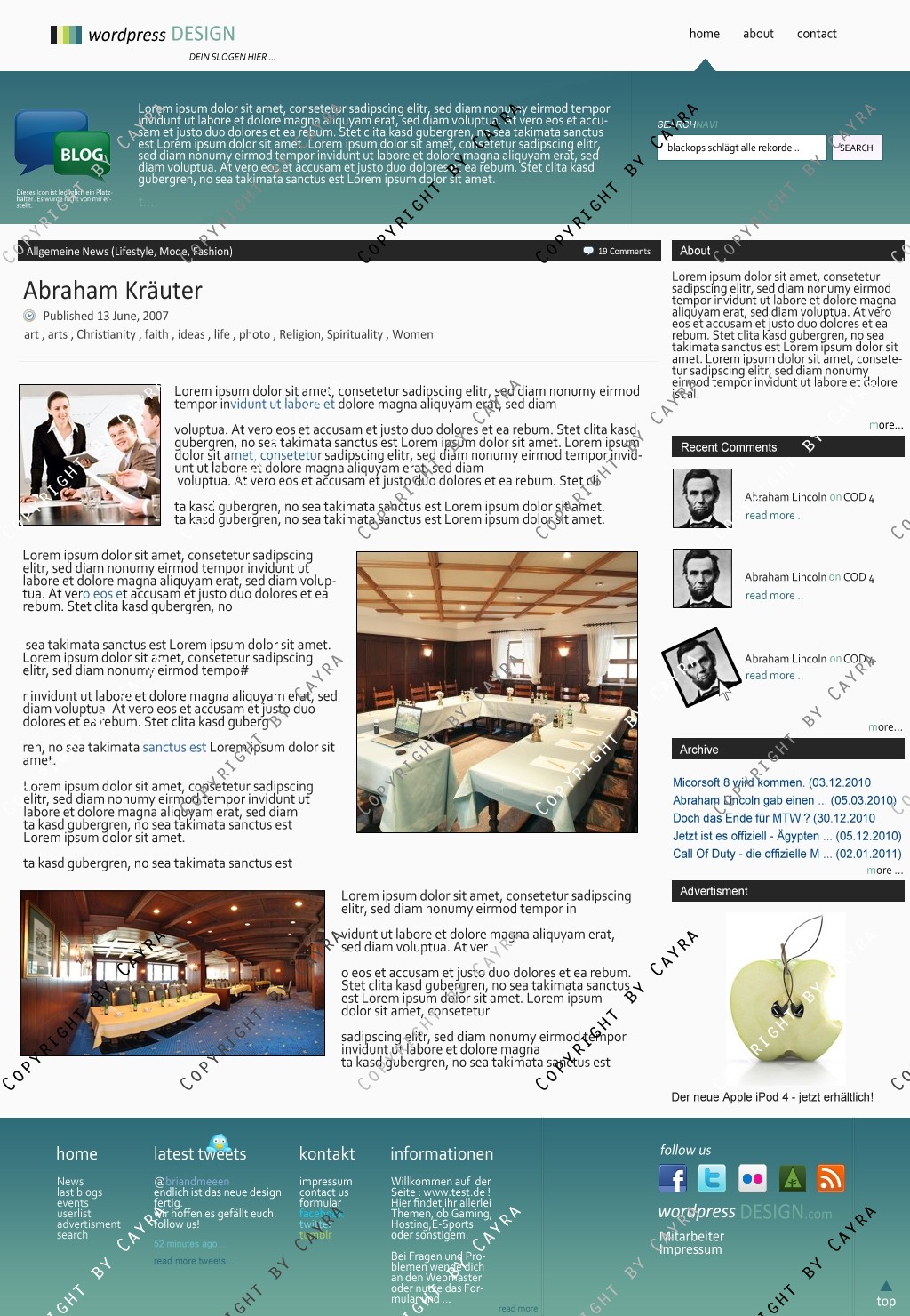 Hinweis: Hierbei handelt es sich nur um das Design, eine Anpassung an ein CMS-System ist nicht im Preis enthalten!