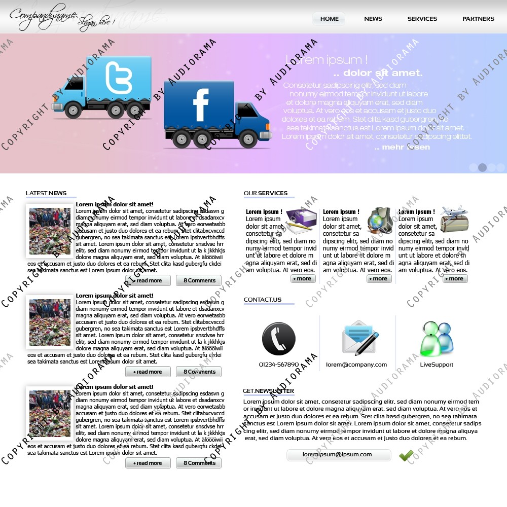 Hinweis: Hierbei handelt es sich nur um das Design, eine Anpassung an ein CMS-System ist nicht im Preis enthalten!