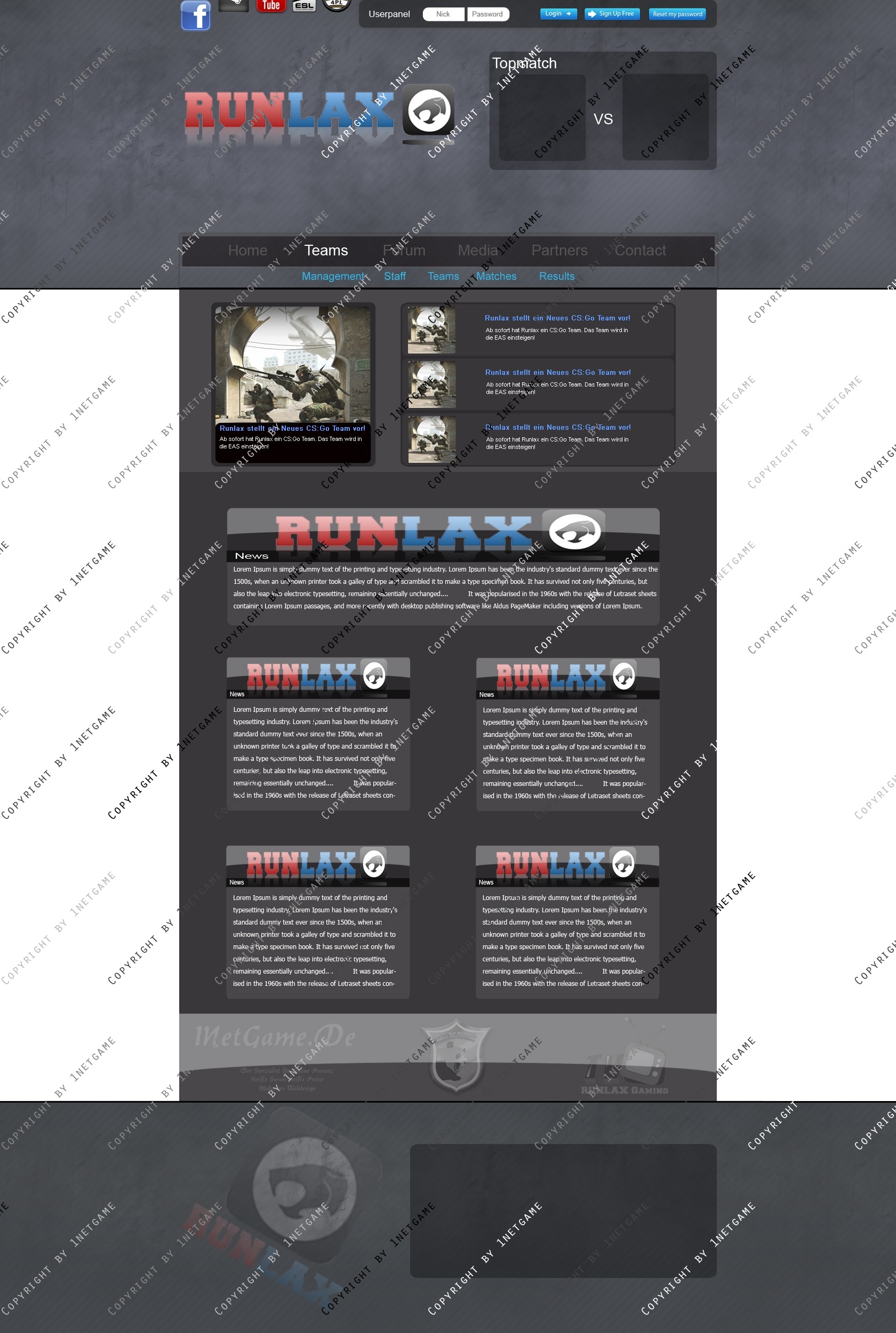 Ich verkaufe folgendes Clan Layout mehrmals oder exklusiv zu einem für mich angemessenen Preis-/Leistungsverhältnis! Verkauft werden lediglich die .psd-Dateien des jeweiligen Templates, das bedeutet also, dass kein Code bzw. Slicing im Preis inbegriffen ist.