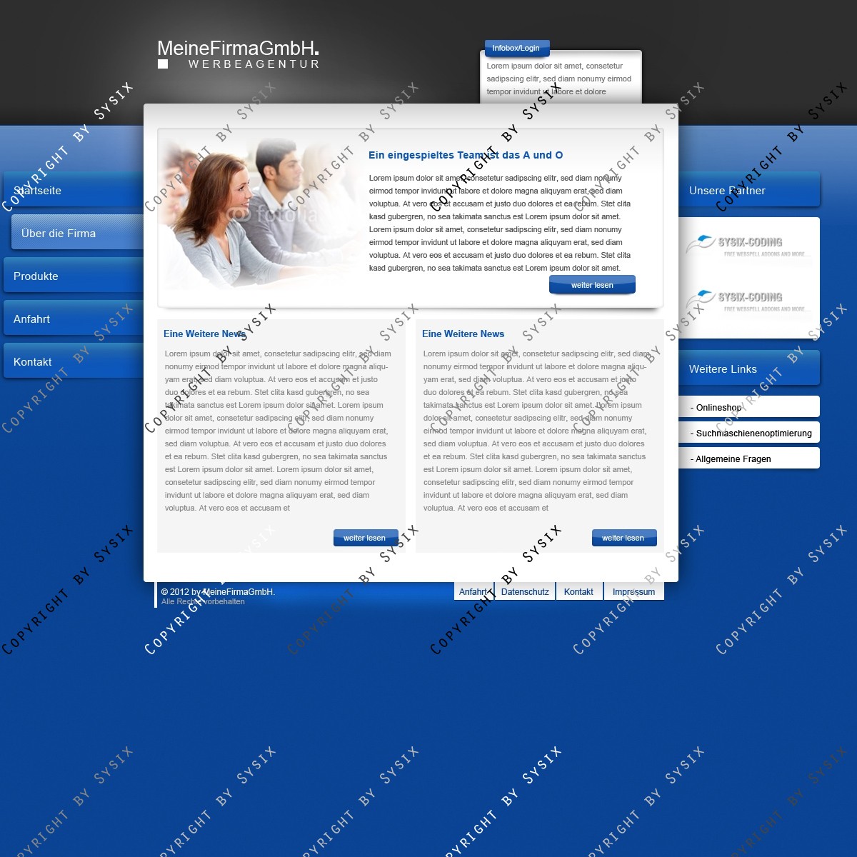 Hinweis: Hierbei handelt es sich nur um das Design, eine Anpassung an ein CMS-System ist nicht im Preis enthalten!