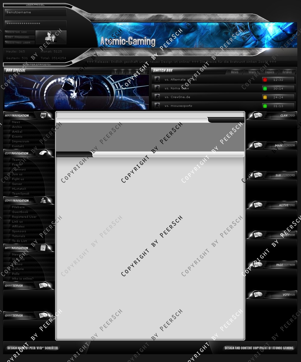 Was Sie hier kaufen ist lediglich die PSD Datei, gerne kann ich es Ihnen gegen einen Aufpreis von 13€ an ein CMS Anpassen, zur Auswahl stehen hierbei: webSPELL, Clansphere, Teklab, Devilz und andere CMS auf Anfrage ohne Aufpreis.