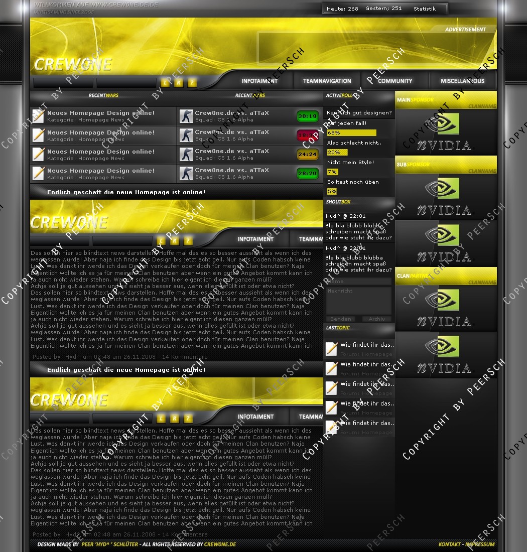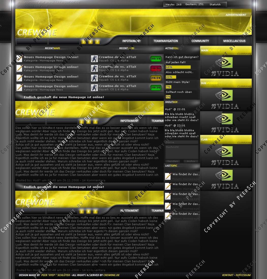 Was Sie hier kaufen ist lediglich die PSD Datei, gerne kann ich es Ihnen gegen einen Aufpreis von 13€ an ein CMS Anpassen, zur Auswahl stehen hierbei: webSPELL, Clansphere, Teklab, Devilz und andere CMS auf Anfrage ohne Aufpreis.