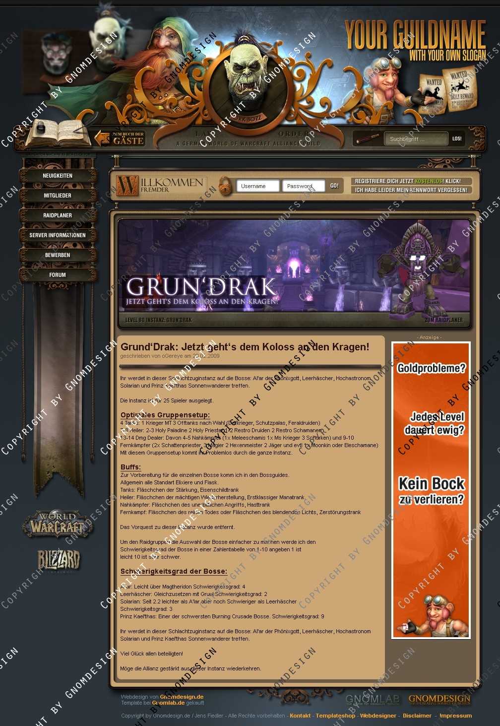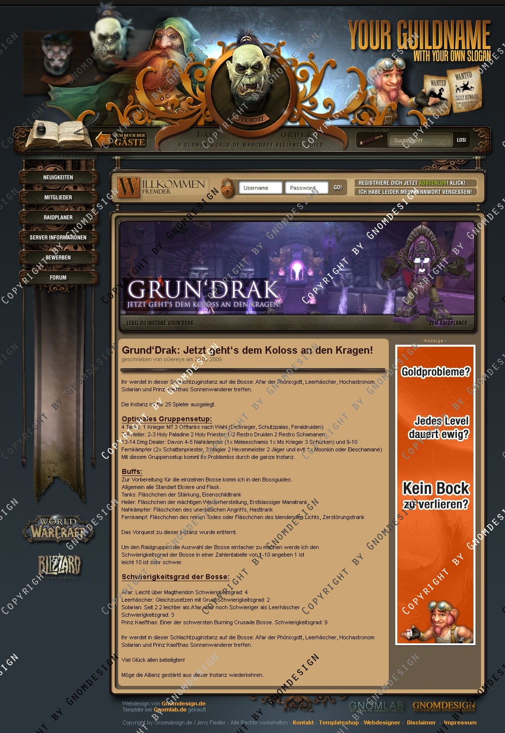 Wer ein einfaches aber schönes Gildendesign sucht, wird eventuell mit diesem Design glücklich. Die Ebenen sind in Ordner strukturiert und Schriften/ Texte leicht änderbar.