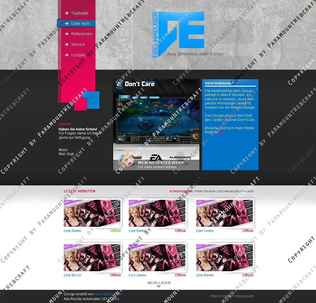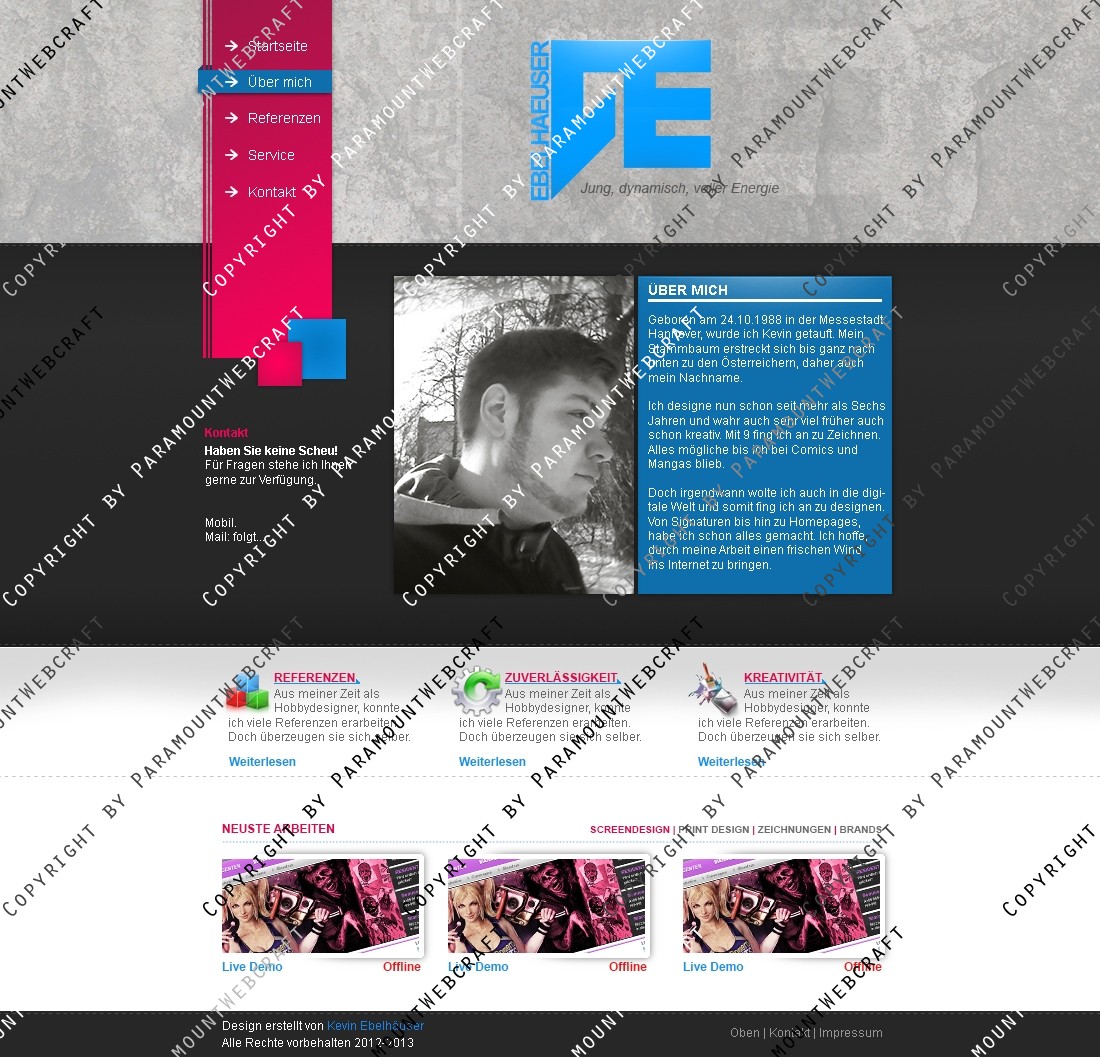 In diesem Packet erhalten Sie eine Photoshop Datei (.psd) mit einem Portfolio das vielseitig einsetzbar ist. Gedacht ist es für Mediengestalter aller Art die ein Portfolio zum Einstieg brauchen. Das Portfolio enthält auch Unterseiten wie z.B. Über Mich und Referenzen.