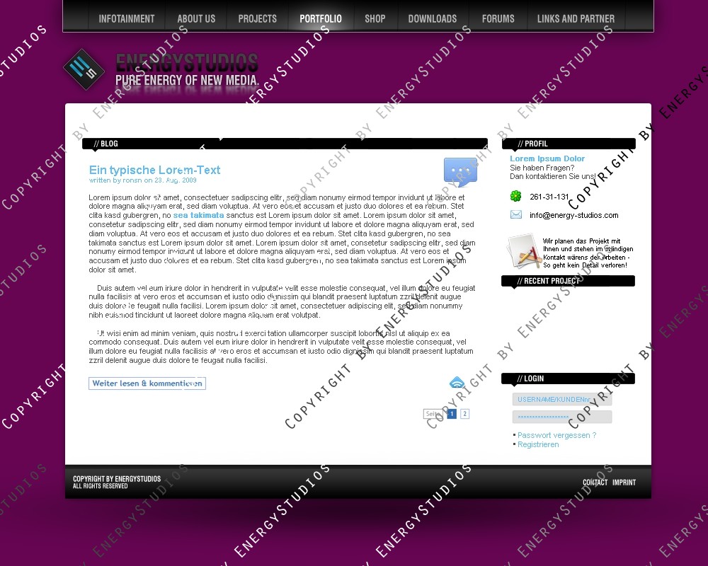 Hinweis: Hierbei handelt es sich nur um das Design, eine Anpassung an ein CMS-System ist nicht im Preis enthalten!