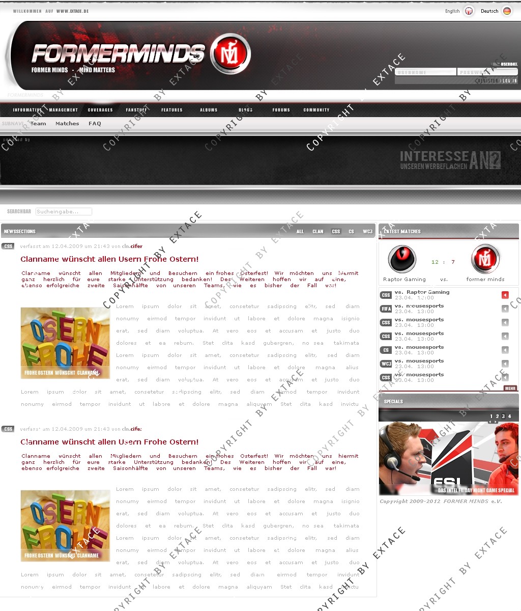 • Anpassung der Homeapage an ein CMS (webSPELL o.ä.) möglich (Zusatzkosten je nach Umfang - nur nach Absrpache)