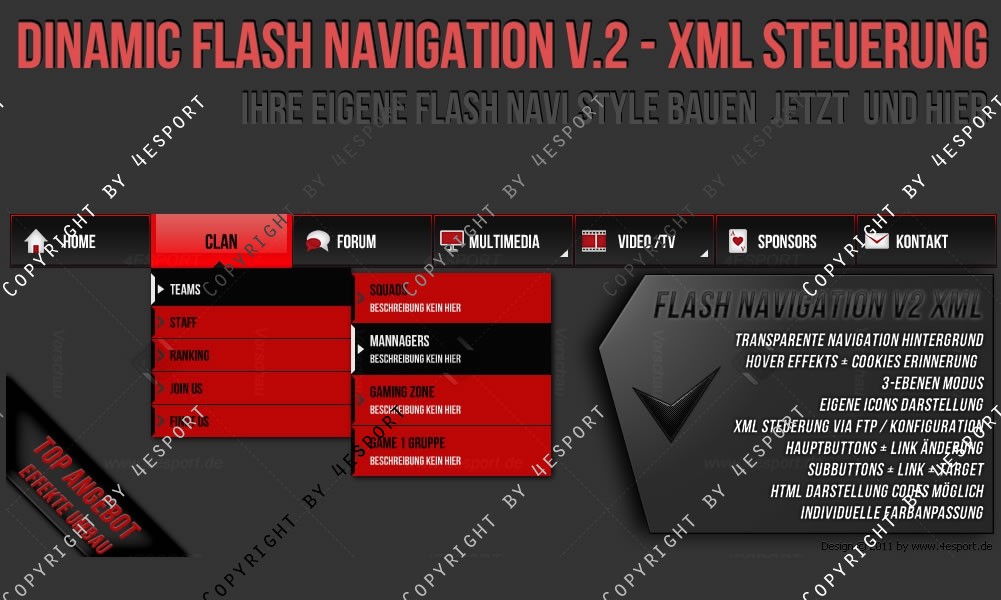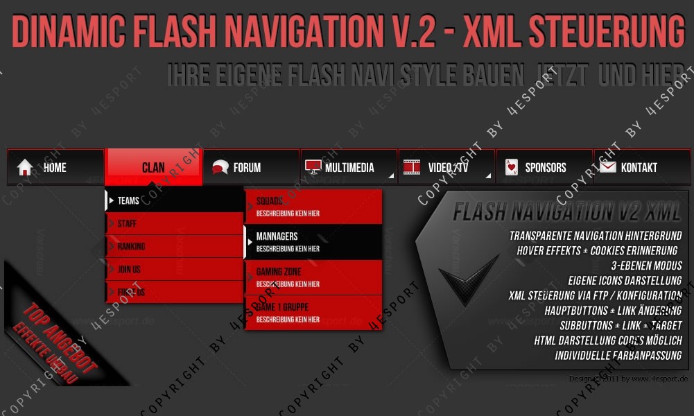 • Flash Animation (Buttons, Sub buttons, Hover Effekte)