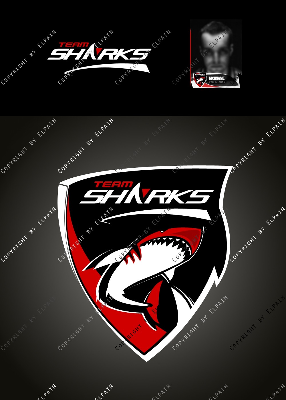 - Die .PSD Datei beinhaltet ALLE Ebenen als Formen, den original Team-Shark Schriftzug und eine kinderleichte Vorlage für den eigenen Clannamen. (Schriftarten liegen bei. S.o.)