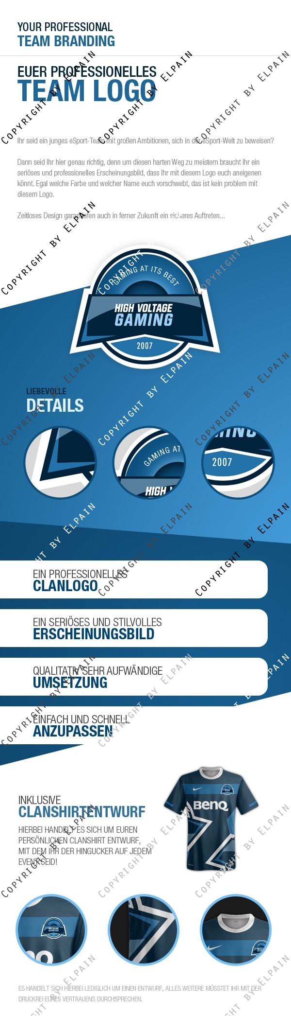 Dann könnte EUCH dieses Logopaket gefallen, denn Ihr kauft hier nicht nur ein einzelnes Produkt, sondern ein Logo, einen passenden Spielerrahmen sowie einen Entwurf für eigene, individuelle Clanshirt.