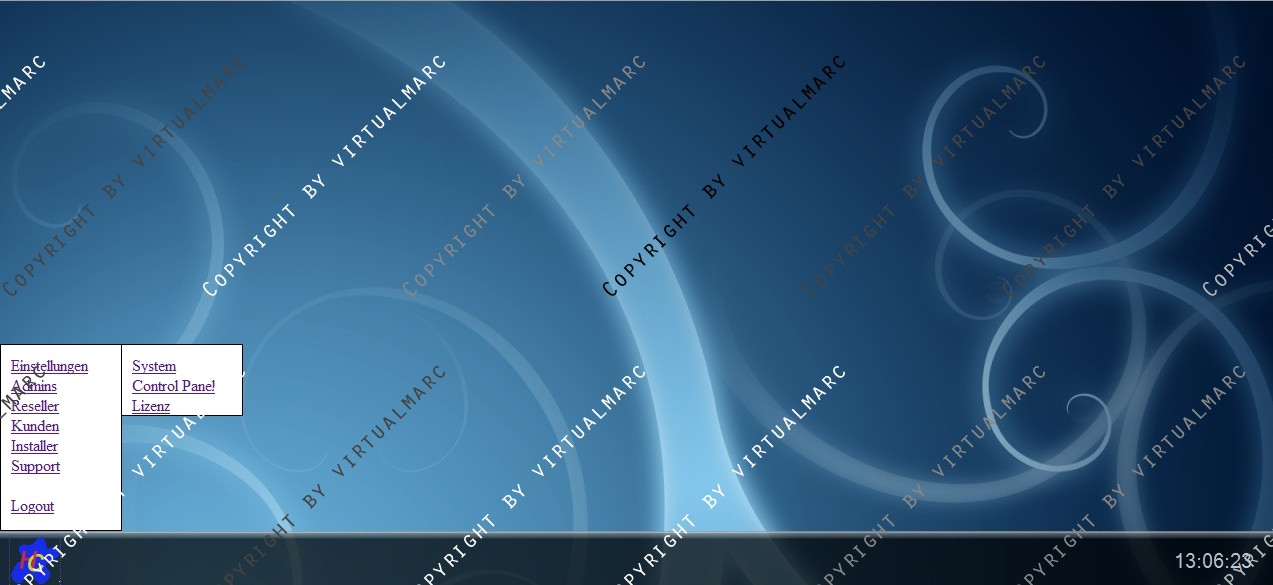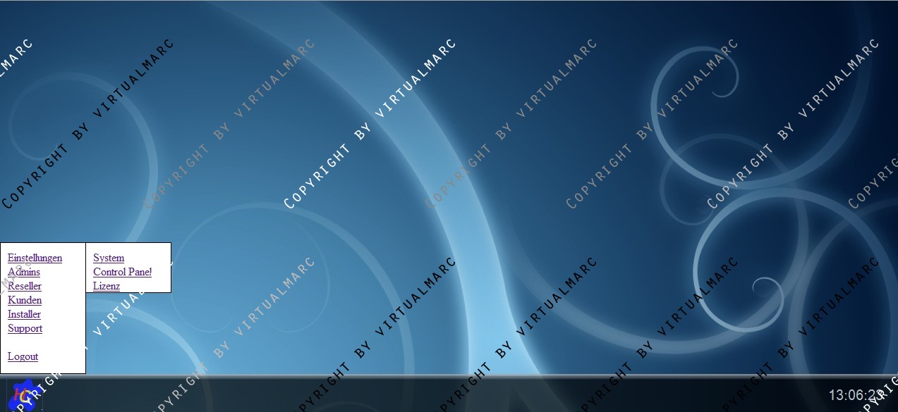 Unten befindet sich eine Menüleiste mit einer Uhr und einem PullUp Menü.