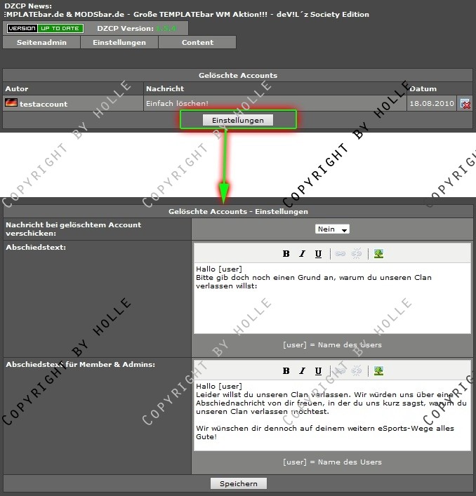 Admins können diese Nachrichten direkt einsehen und können eine Nachricht empfangen, sobald jemand seinen Account gelöscht hat. Außerdem können sie einen eigenen Text eingeben, welcher als Abschiedstext angezeigt wird.