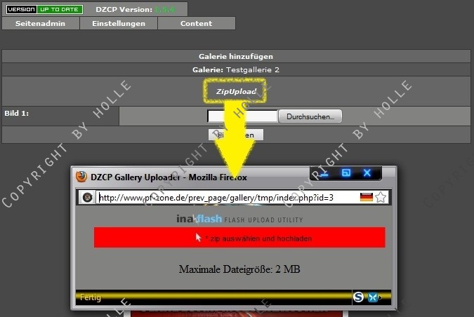 Darum habe ich diesen kleinen aber feinen Mod für das DZCP geschrieben, welcher euch erlaubt, eine zip-Datei mit Bilddateien auszuwählen & hochzuladen.