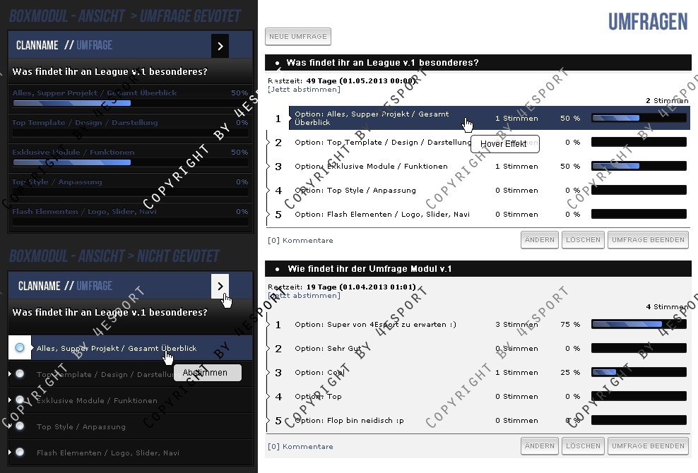 Hier erhalten Sie für ihre Clanhomepage ein Professionelle Poll/Umfrage Modul Erweiterung.