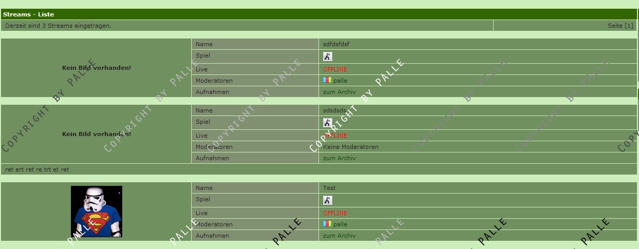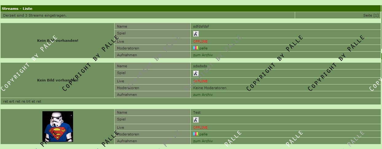 Diese werden aufgelistet, sofern ein Stream Online ist, wird dieser Automatisch auf eine weitere Unterseite verlinkt wo man diesen Stream anschauen kann und dabei ggf. etwas Chatten kann.
