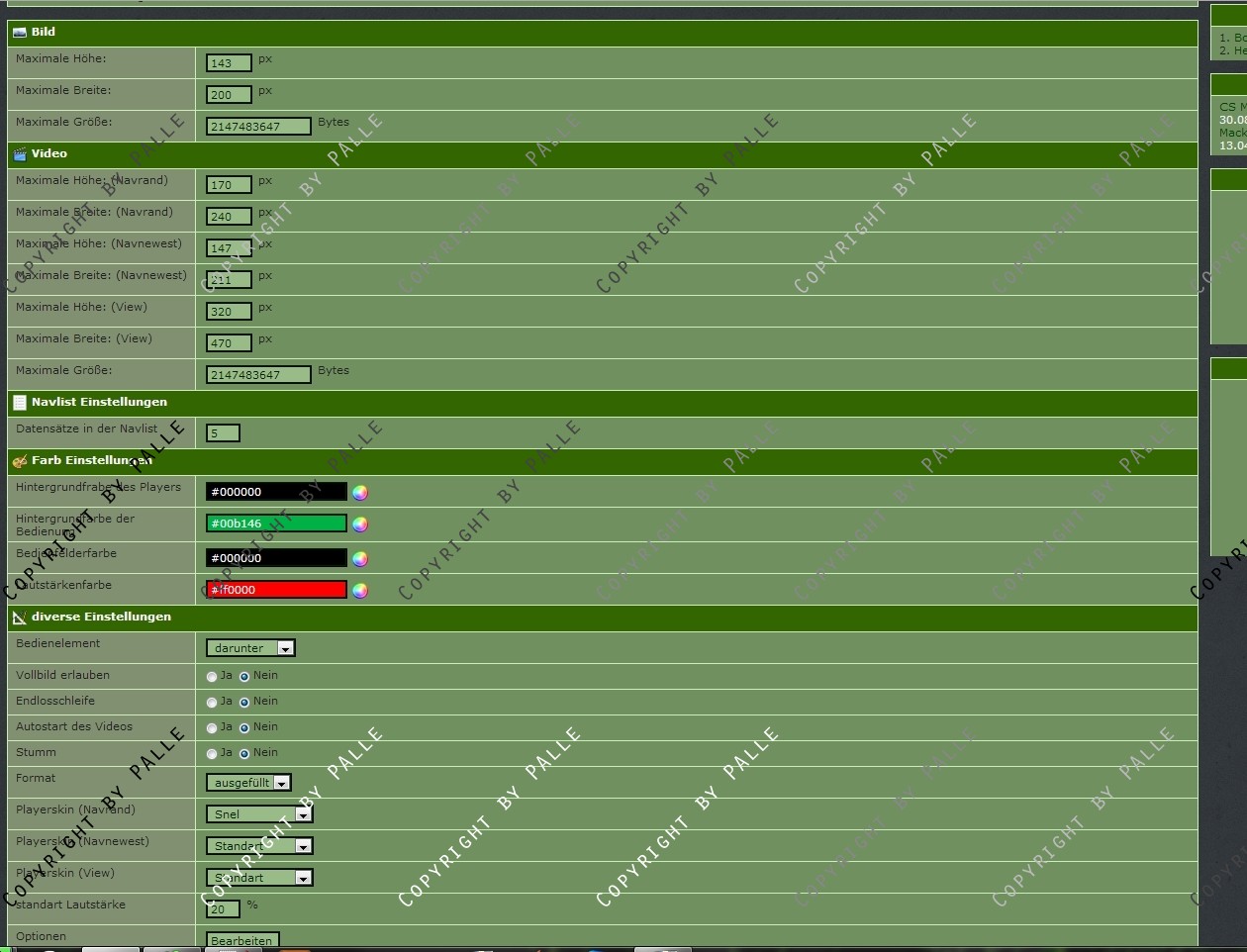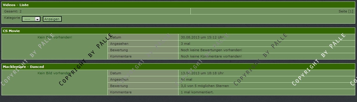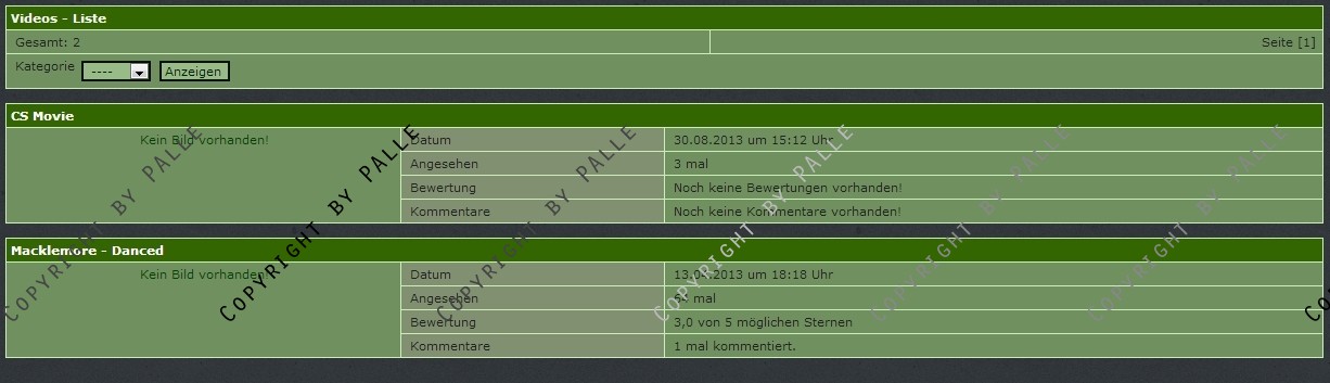 Es werden 3 Navlisten mitgeliefert (letzten X anzeigen, ein random video sowie das neuste video können ausgegeben werden).