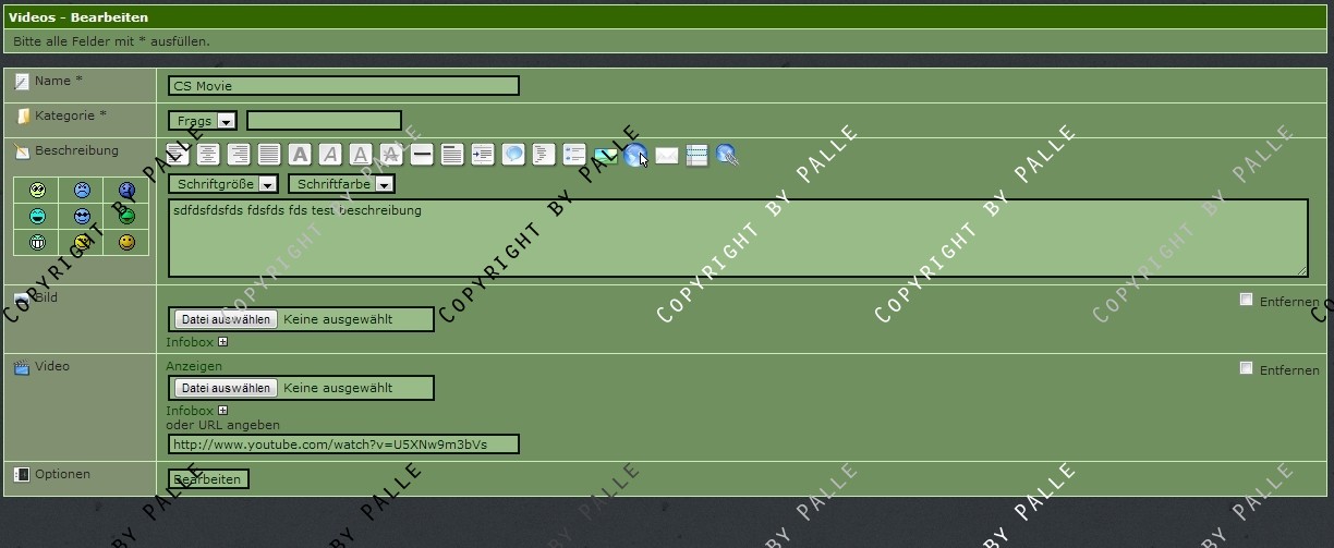 Man kann eigene Videos hochladen (flv Format) oder aber Youtube URLs angeben.