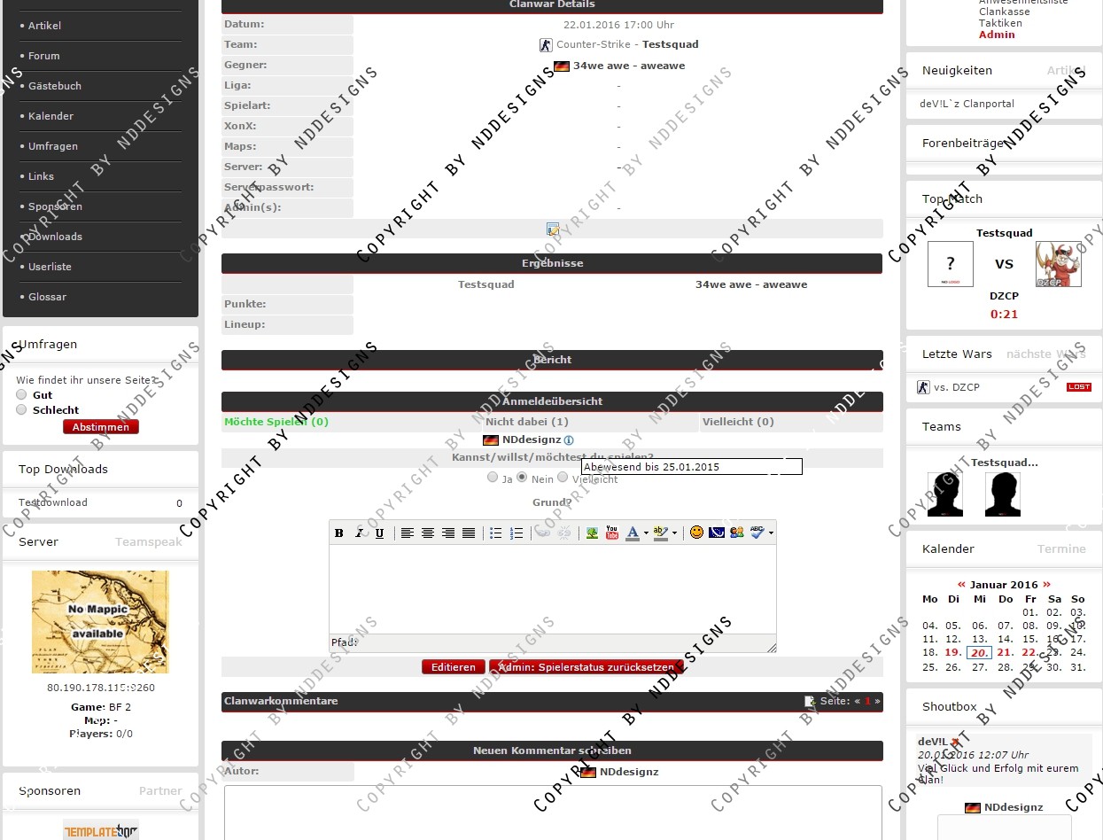 Du hast noch keinen Account auf ClanDesigns.de? Dann kannst du dich hier kostenlos registrieren!