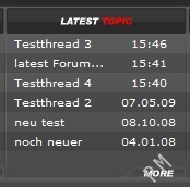 Mit diesem Addon ist es möglich die Uhrzeit der letzten Forenposts angezeigt zu bekommen. In der Infobox zu den letzten Forenposts steht jetzt nicht nur noch der Name der Threads, sondern auch das Datum des letzten Posts.