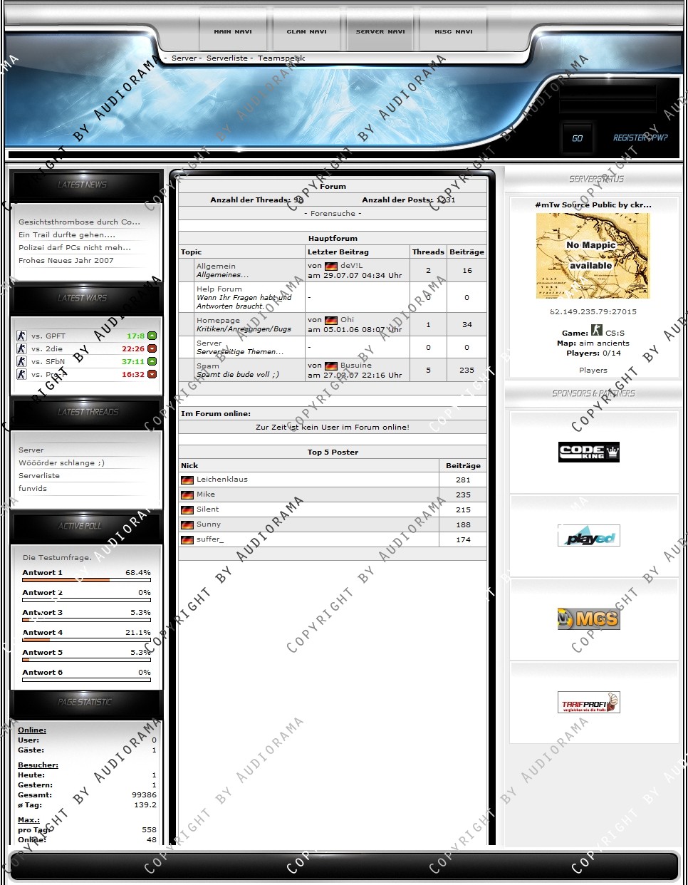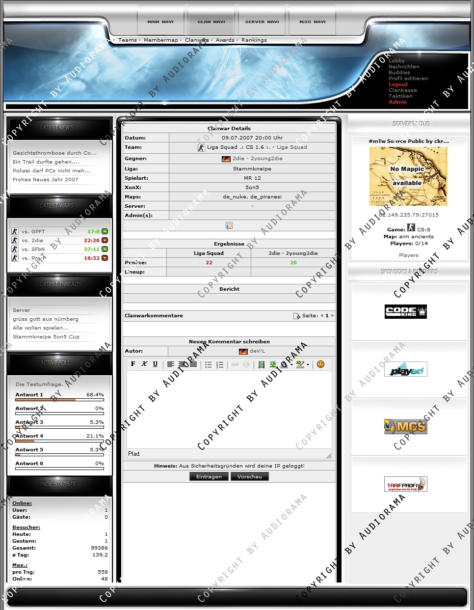 Du hast noch keinen Account auf ClanDesigns.de? Dann kannst du dich hier kostenlos registrieren!