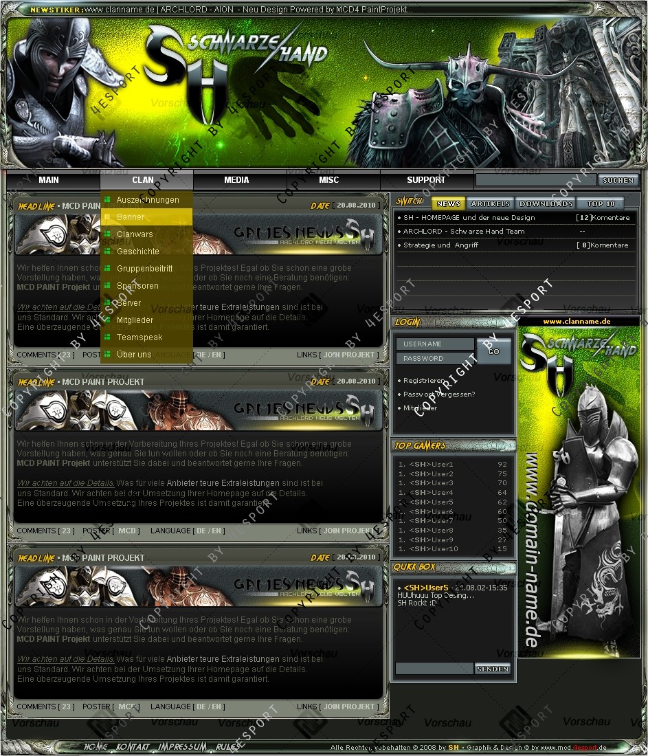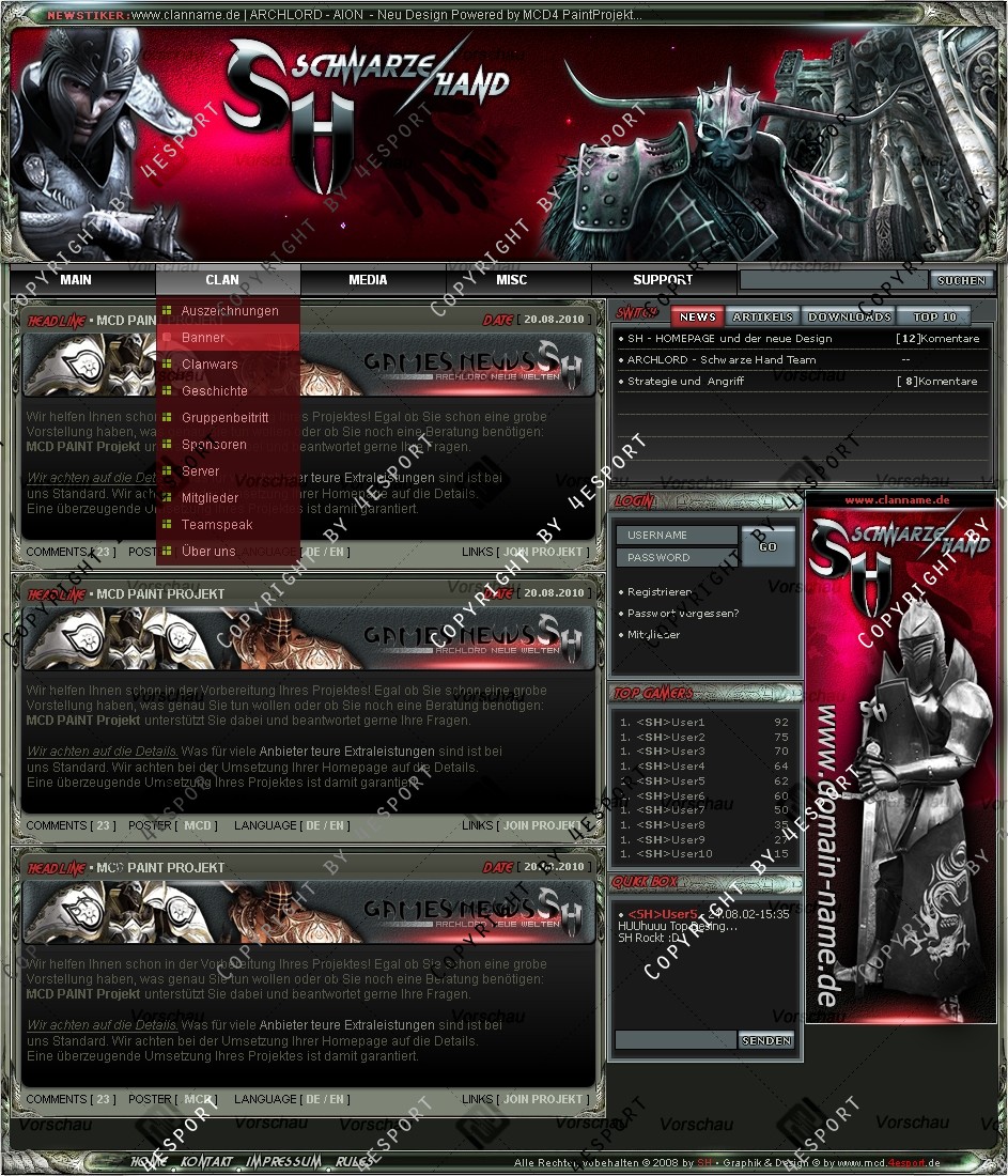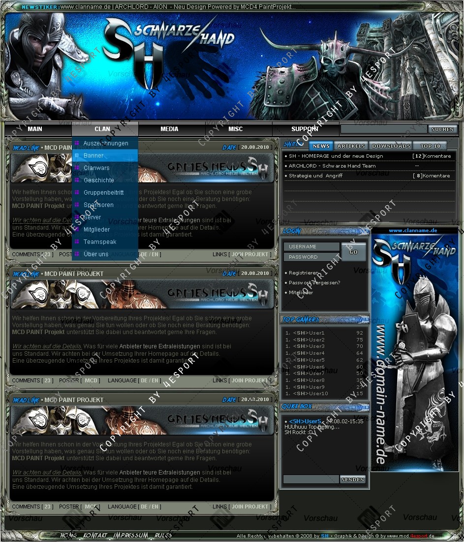 Wir können auch Ihre EXKLUSIVE Farbanpassung anfertigen bzw.: Neue LOGO CLAN NAME, Rahmen, Boxen Hintergründe, Titel-Fonts, Verlauf-Farben, Boxen Anordnung, usw....  das alles ist nur in EXKLUSIVE PREIS enthalten.