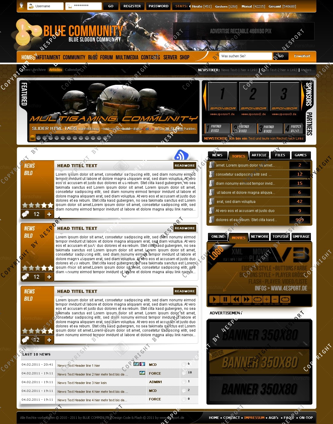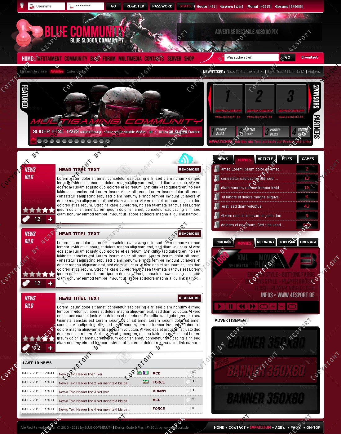 Blue Community Templates Premium edition mit Flash Player 1 V3 Custom Edition und Featured System, CMS Erweiterung Webspell 4.2.2a, wird auf wunsch auf ClanWORLD v1.1 auch gecodet.
