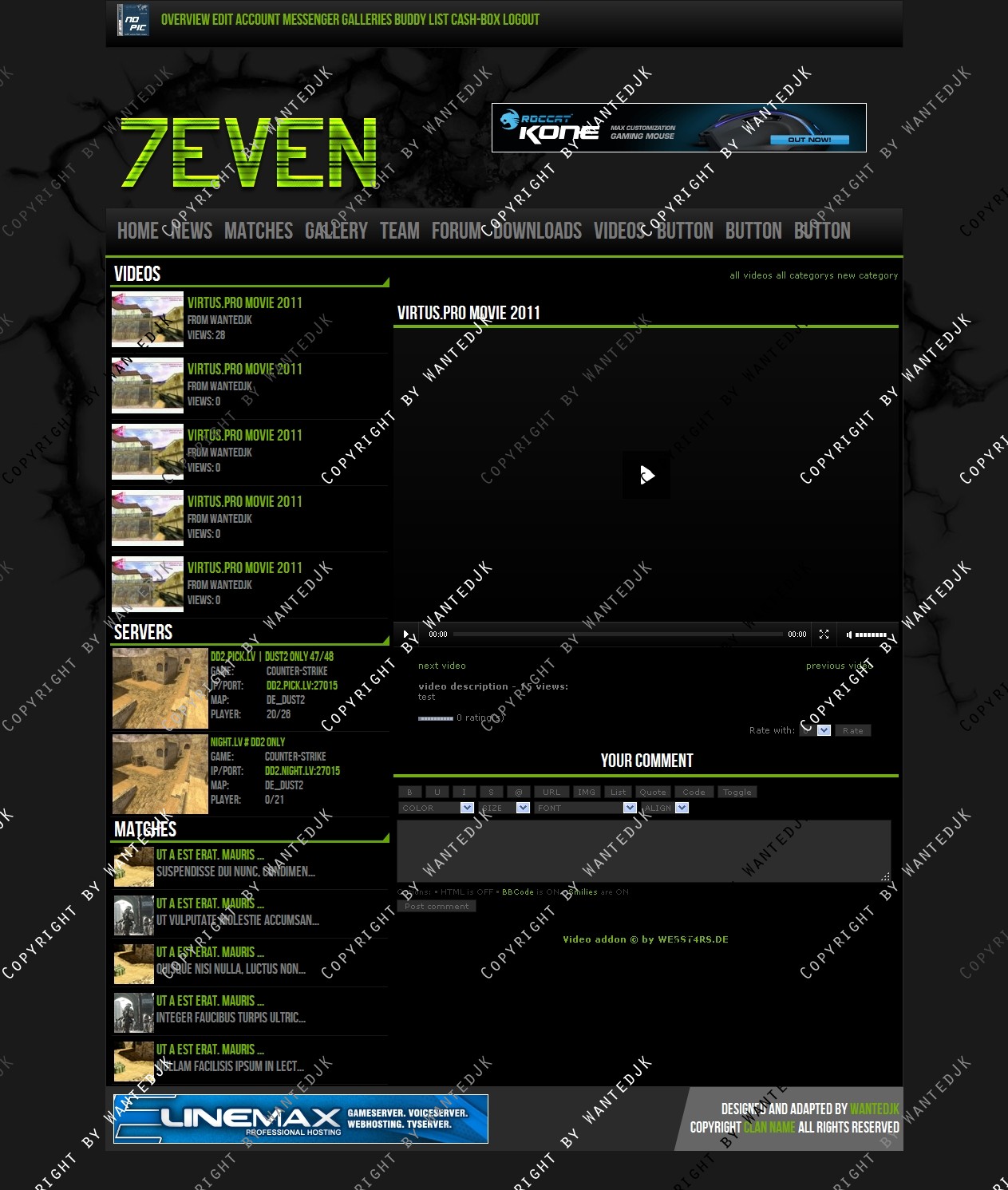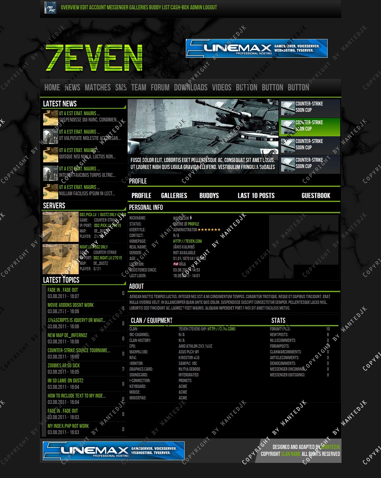 Include templates: News , Forum , Matches , Profile