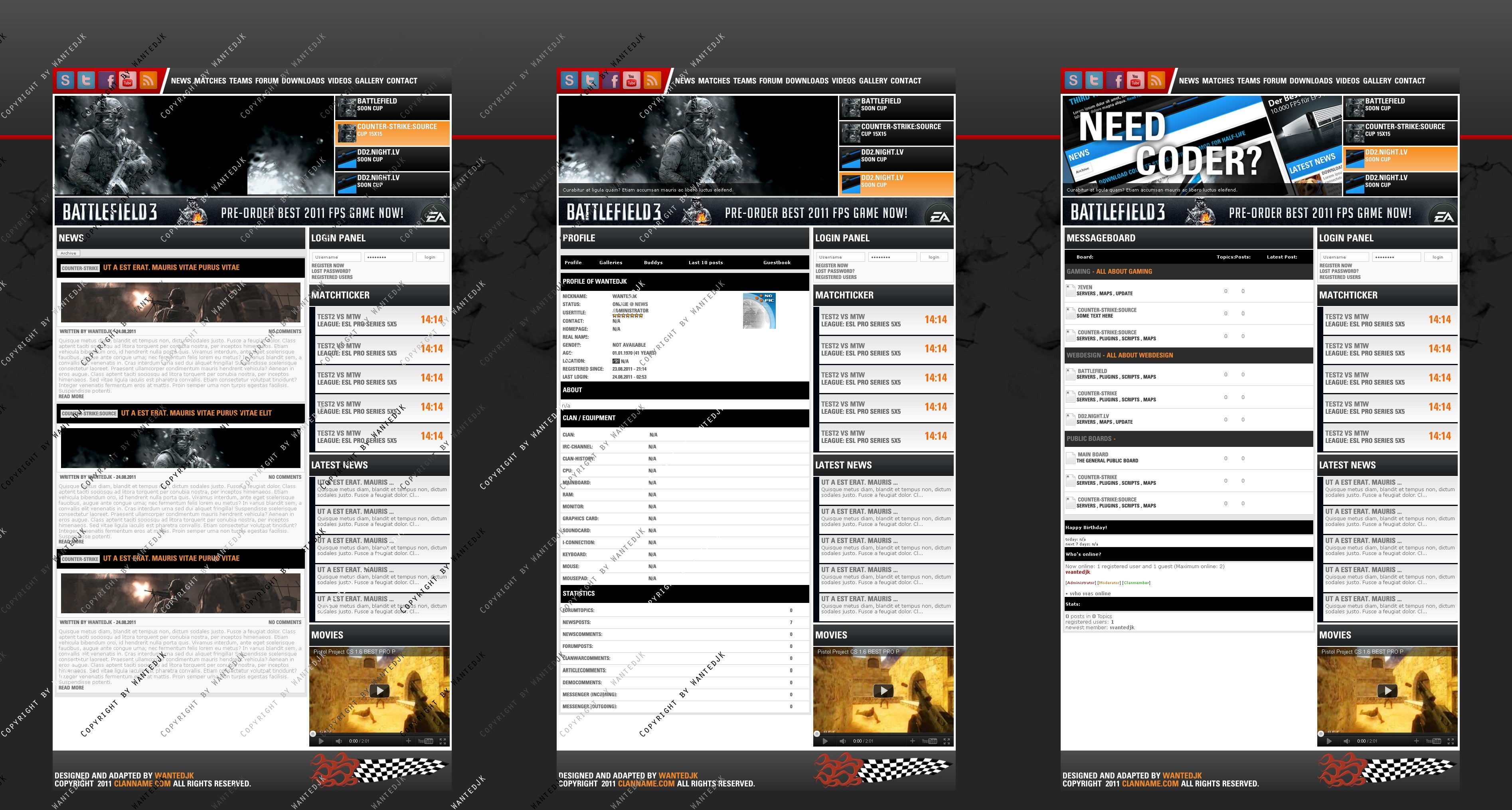 Include templates - News , Forum , Profile , Matches , Members