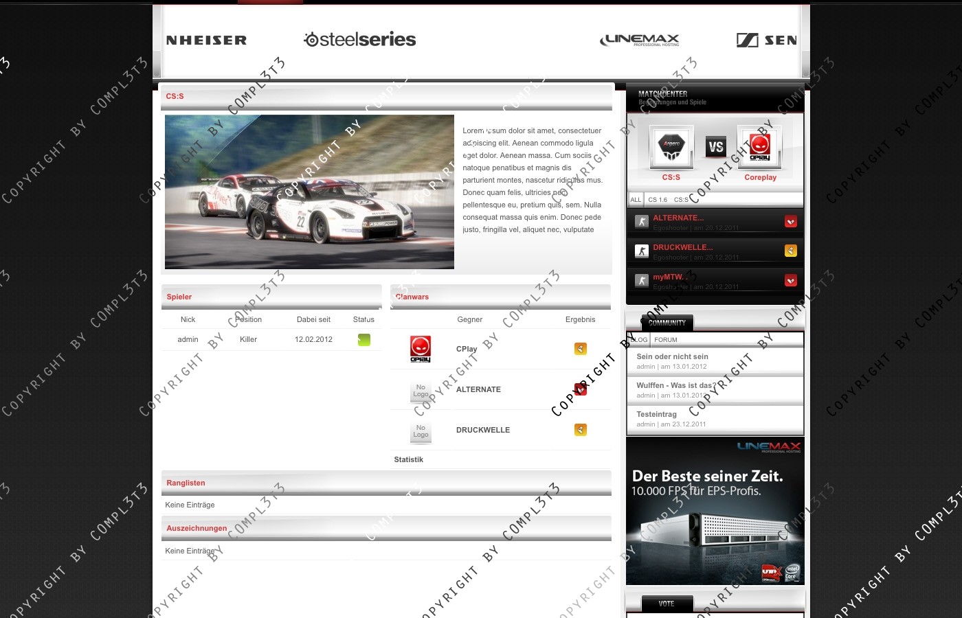 Zusätzlich dazu wurden alle hier nicht aufgeführten Ansichten einschließlich des Verwaltungsbereiches per CSS so formatiert und gestaltet, dass weder Sie noch Ihre User bemerken werden, dass es sich hierbei um das Clansphere CMS handelt.