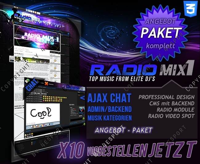 • CMS WEBSPELL + RADIO UPDATE V1.0 (Hier sind alle Exklusiven Module zu dem Design inkl. Installationsdienst als PAKET vorhanden.)