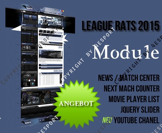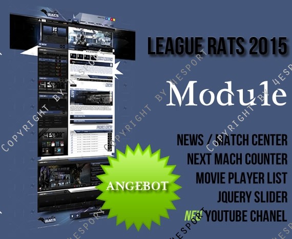 •    CMS WEBSPELL + League V1.0 (Hier sind alle Exklusiven Module zu dem Design inkl. Installationsdienst als PAKET vorhanden.)