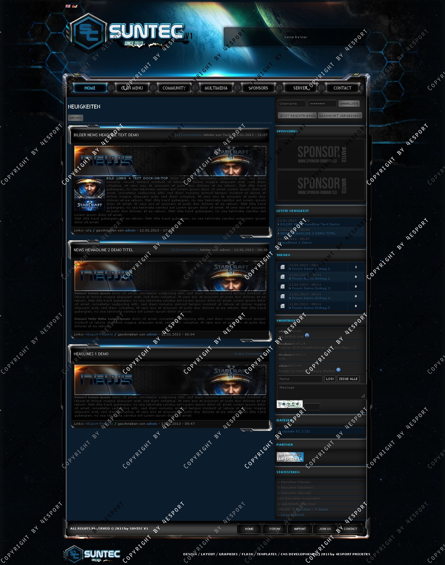 • Sie erhalten hier einem Professionellen Design, Programmiert, Implementiert und Vollständig angepasst an webSPELL CMS ab Version: 4.2.3 x