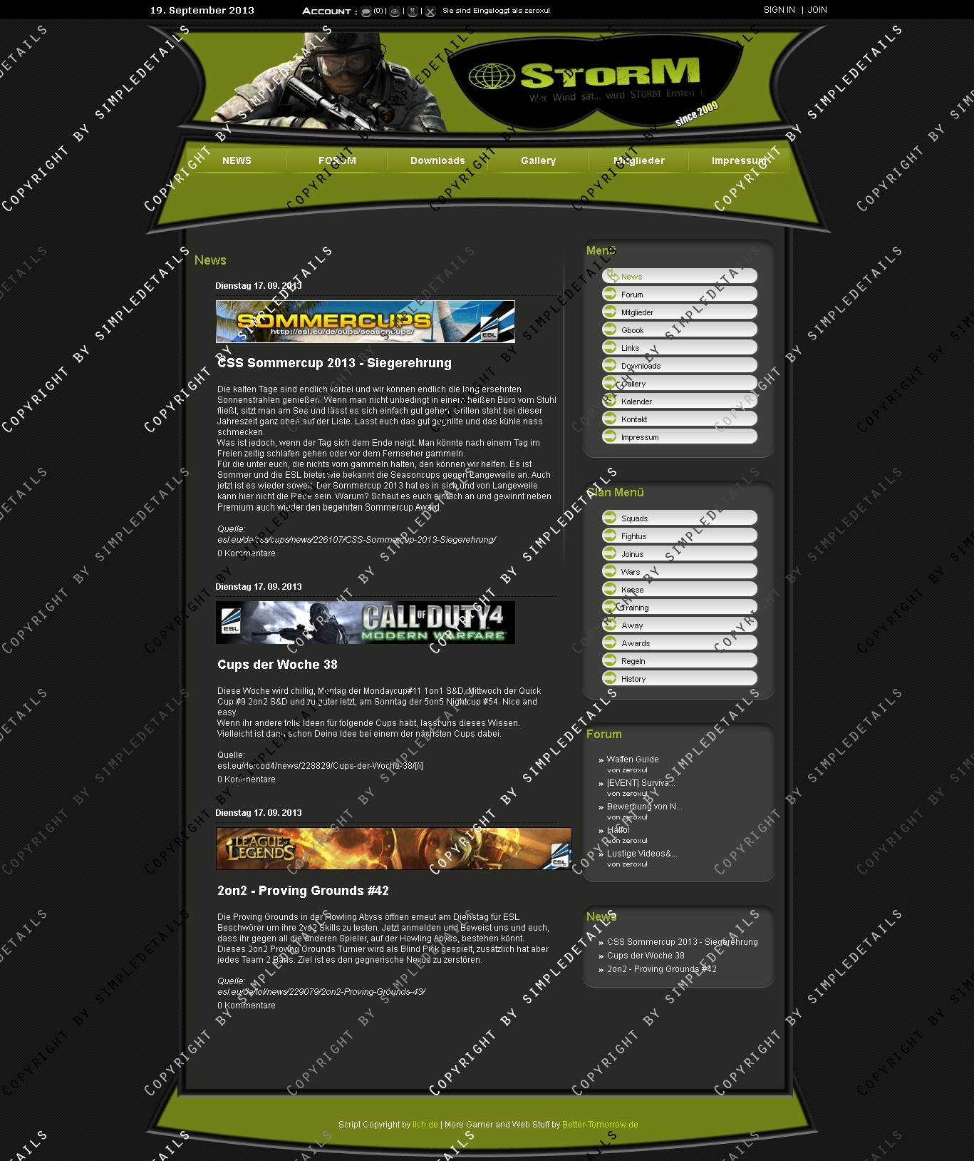 Im Header ist ein Clan-Logo eingebunden, das auch in der .PSD Datei vorhanden ist, und frei angepasst werden kann.