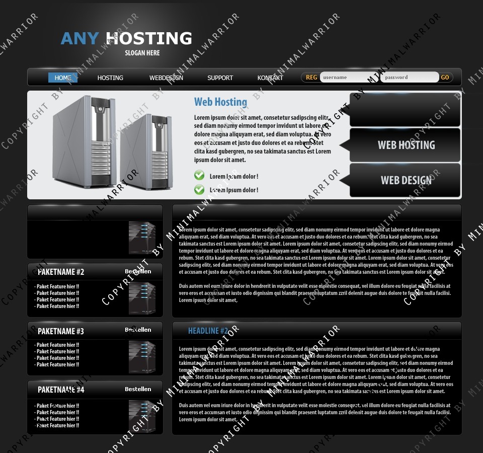 Sei der Erste und kaufe dir das Template Exklusiv um sicher zu gehen, das einzig und allein dein Hosting/Sponsoring dieses Top-Design benutzt. Denn anhand des Designs kann man schon die Qualität des Hosting/Sponsorings erkennen.