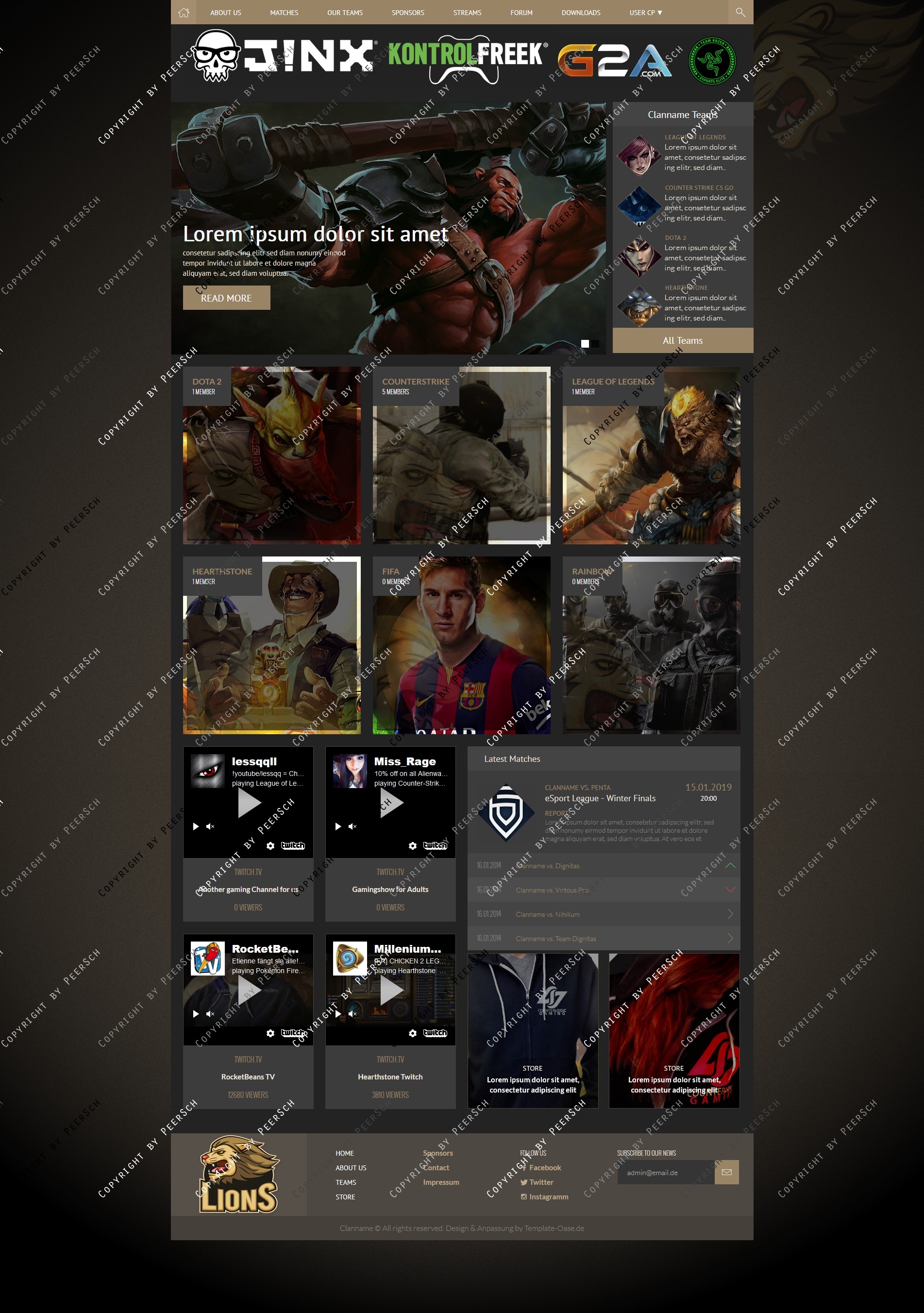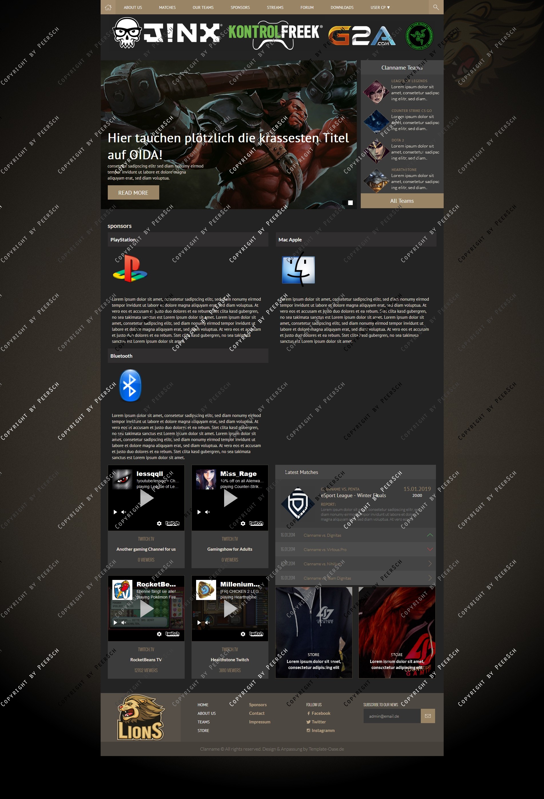 Im Preis mit inbegriffen sind außerdem die angepassten Unterseiten: Sponsoren, Squads, Squaddetail, News, Newscomments, Profil und Streams!