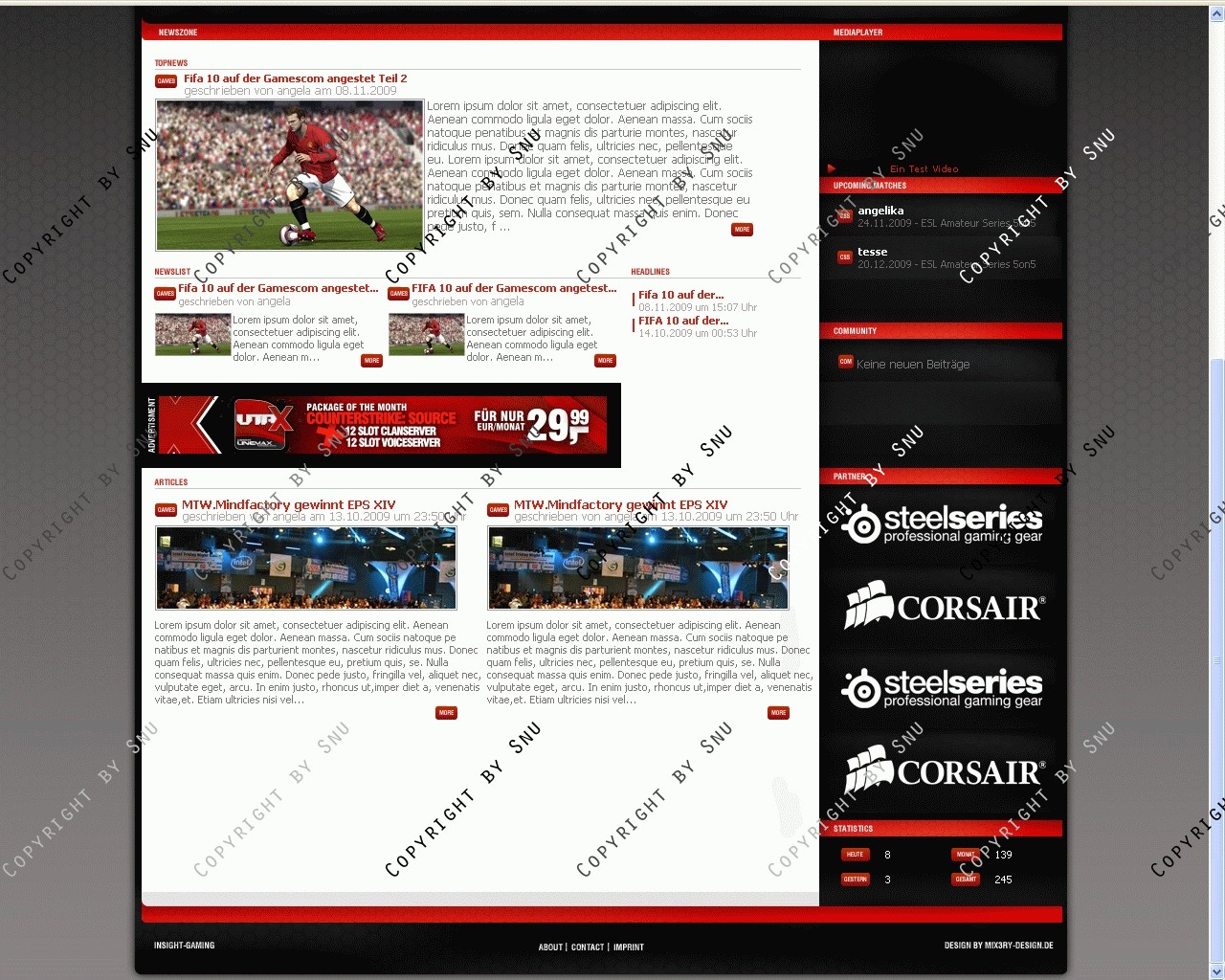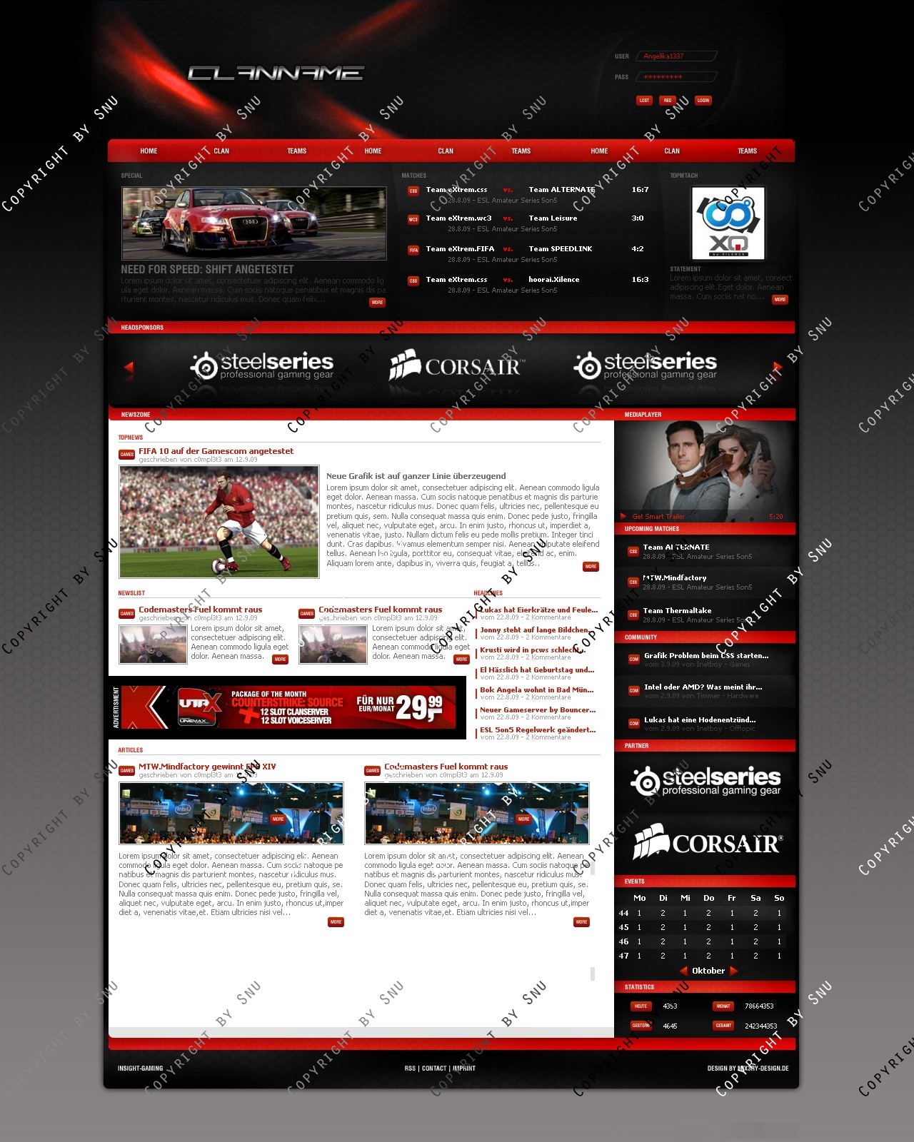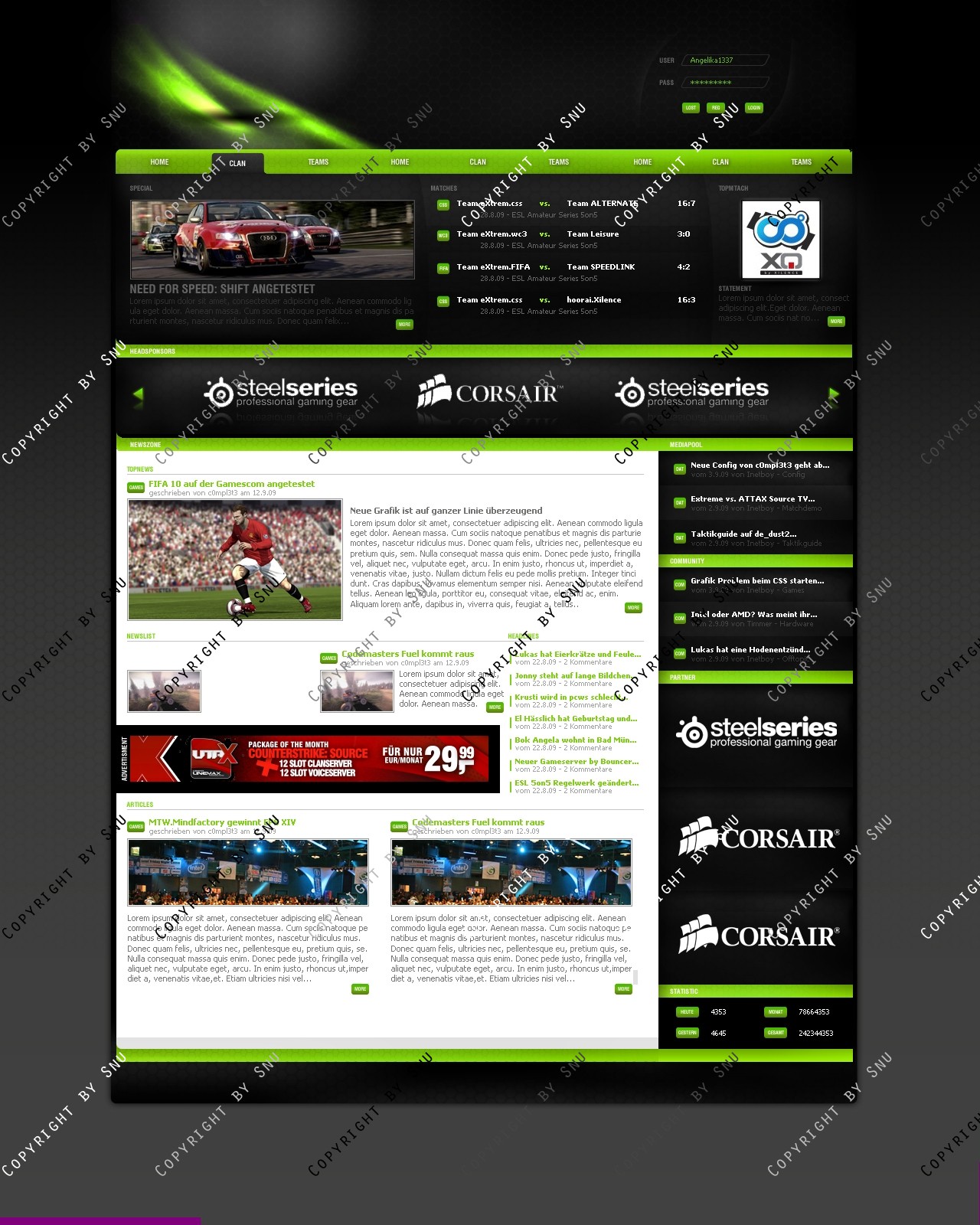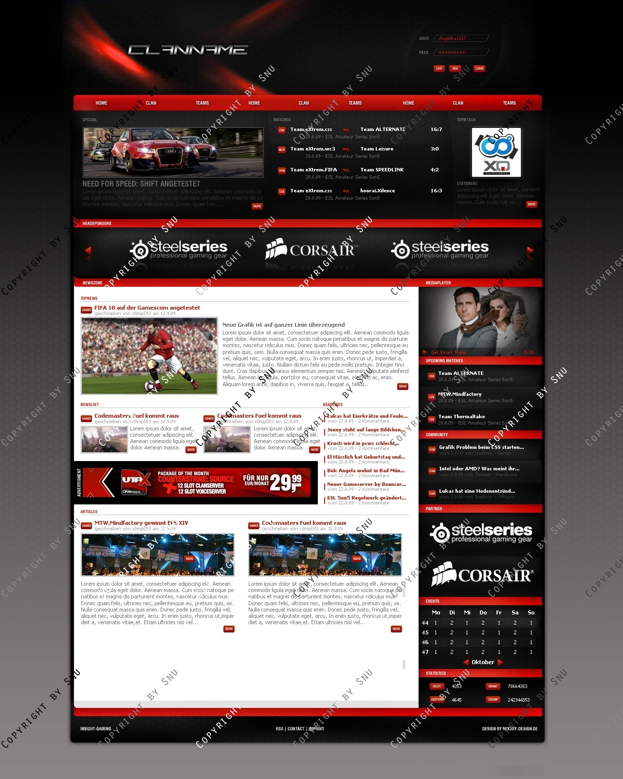 Verkauft wird ein erstklassiges Clandesign, das sich besonders durch seinen cleanen, profesionellen Look  eindeutig von der Masse der Designs abhebt. Der durchdachte Aufbau ermöglicht es jedem Benutzer sich in kurzer Zeit einen Überlick über wichtige Informationen zu verschaffen. Eine professionelle Verarbeitung rundet die Erscheinung einer gelungen Internetpräsenz ab. Zudem ist ein erstklassiger Flashplayer enthalten.