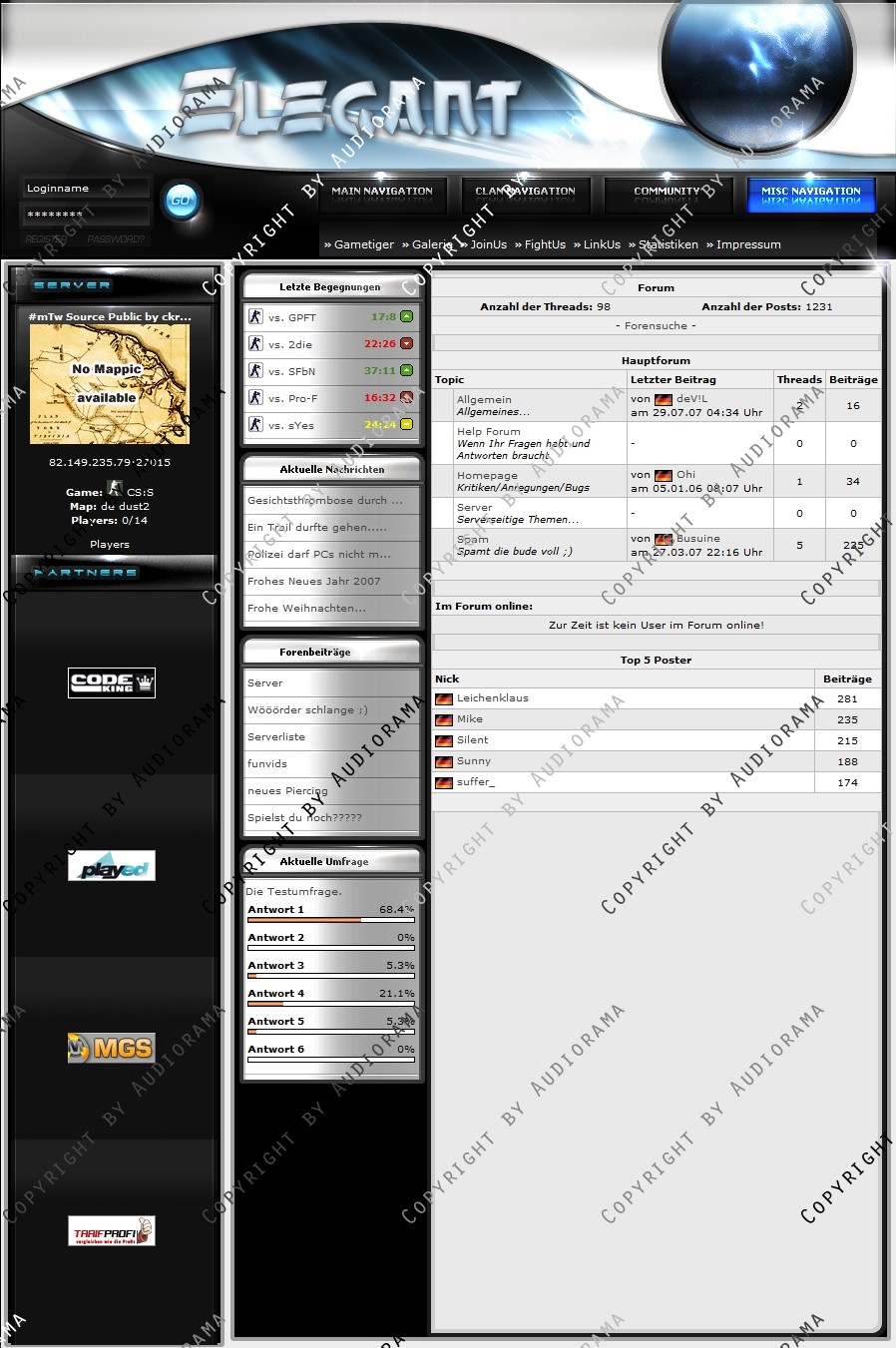 Du hast noch keinen Account auf ClanDesigns.de? Dann kannst du dich hier kostenlos registrieren!